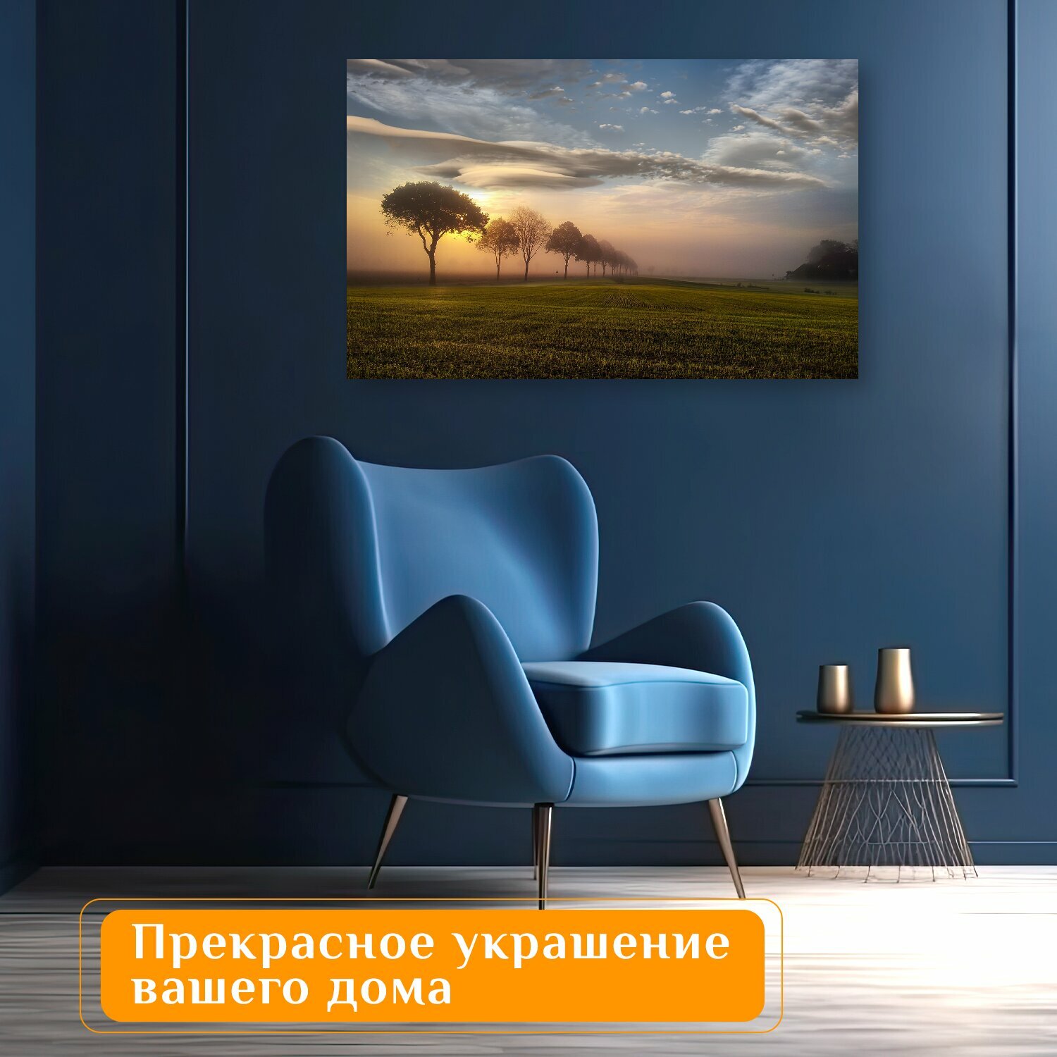 10 цен на Картина на холсте "Пейзаж, поле, заход солнца" на подрамнике 120х75 см. для интерьера