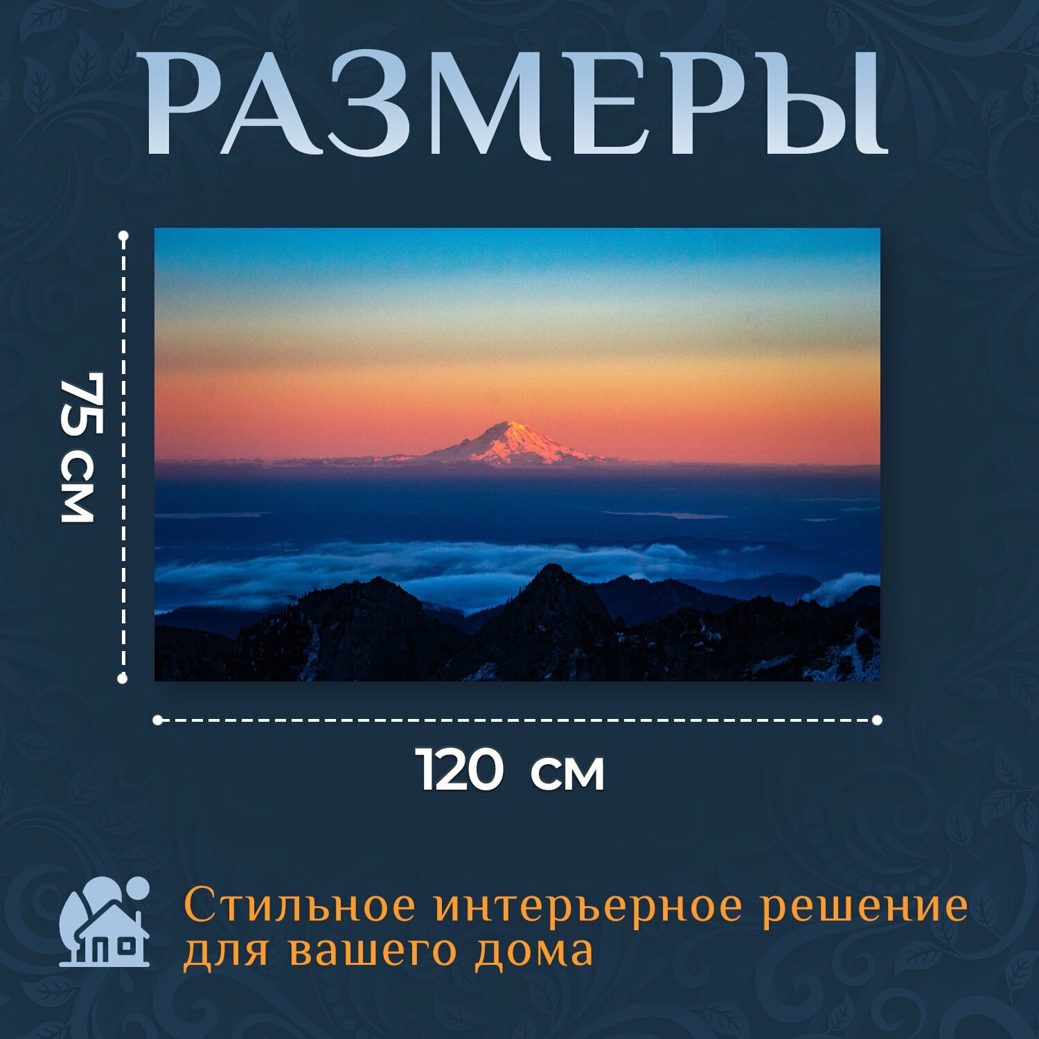Картина на холсте "Горы, облака, заход солнца" на подрамнике 120х75 см. для интерьера информация: