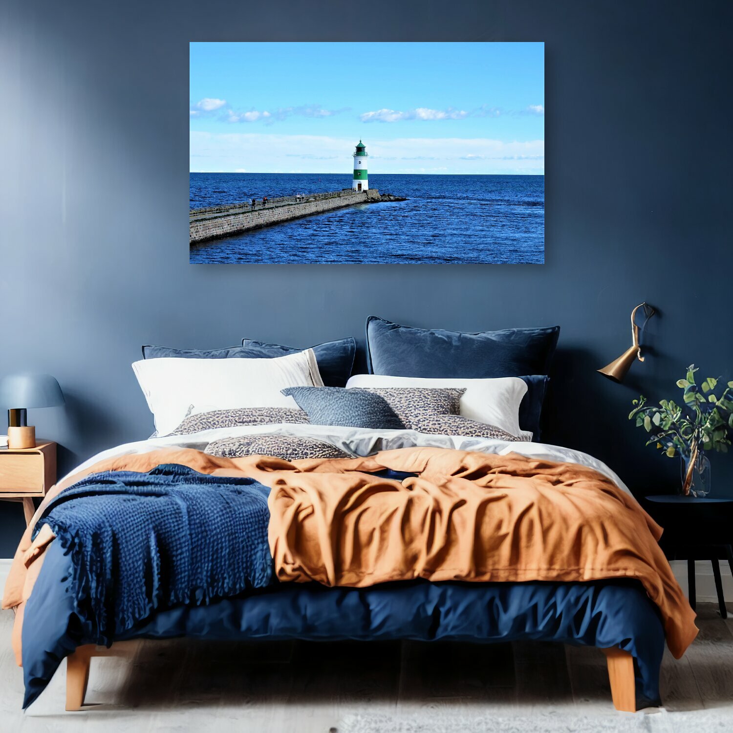 10 цен на Картина на холсте "Маяк, морской берег, море" на подрамнике 120х75 см. для интерьера