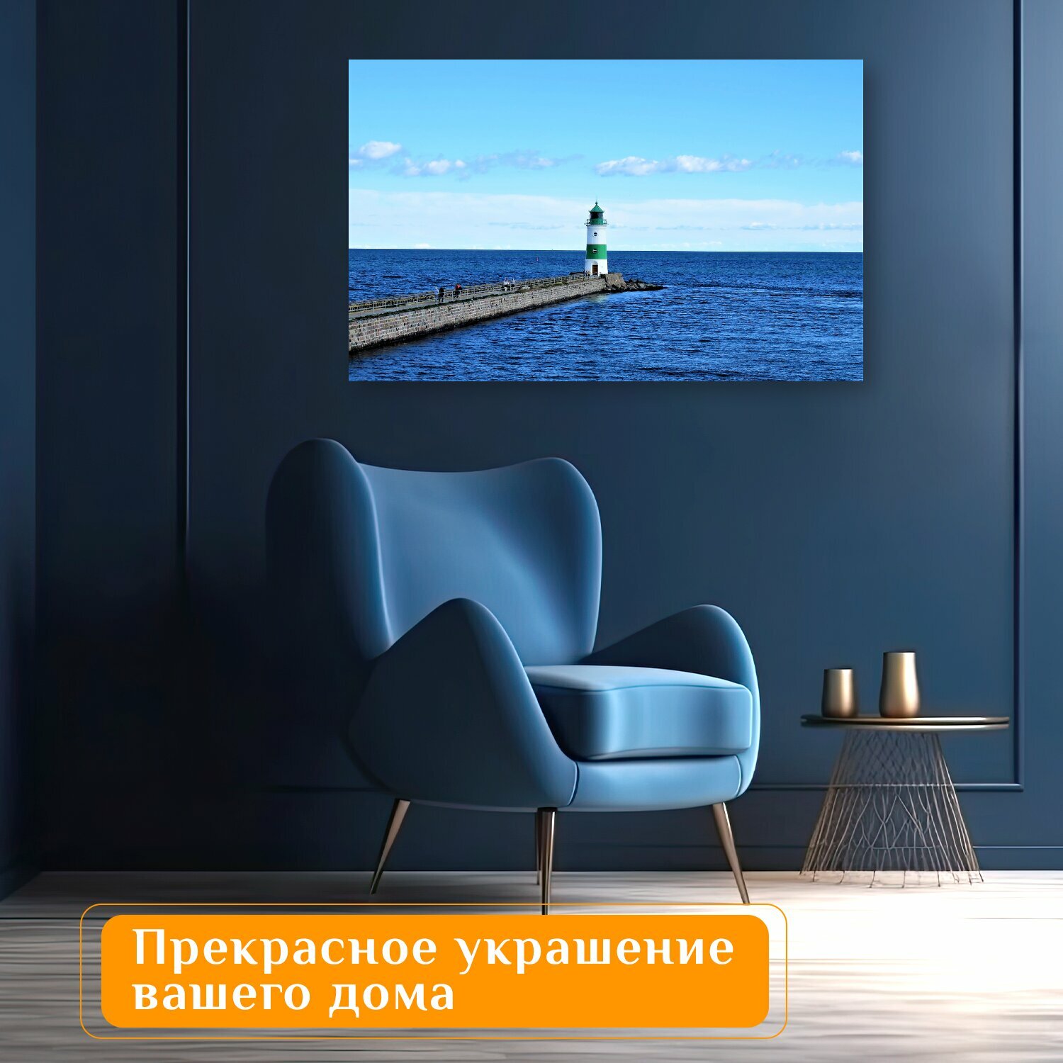 Отзывы на Картина на холсте "Маяк, морской берег, море" на подрамнике 120х75 см. для интерьера