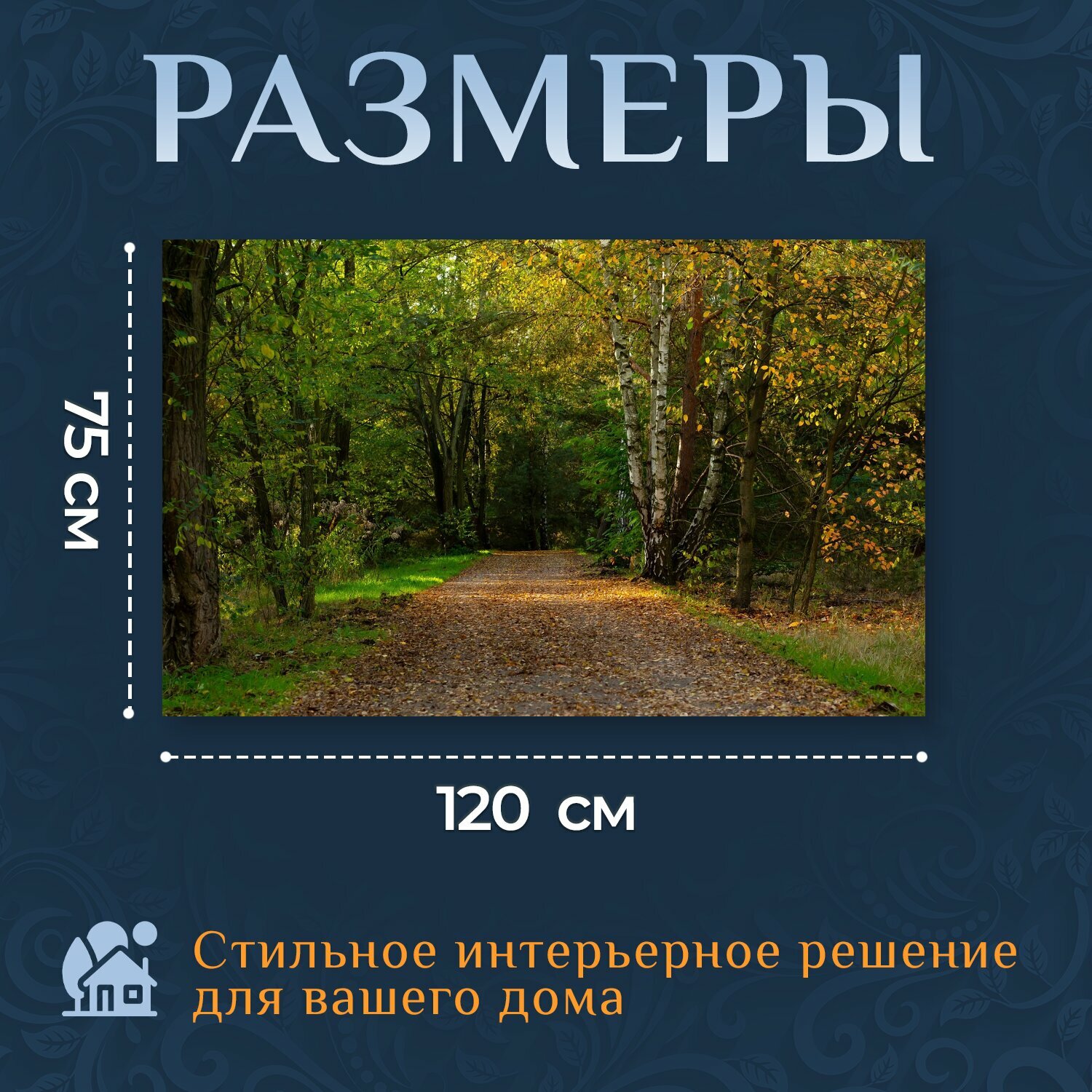 Картина на холсте "Падение, лес, лесная тропа" на подрамнике 120х75 см. для интерьера информация: