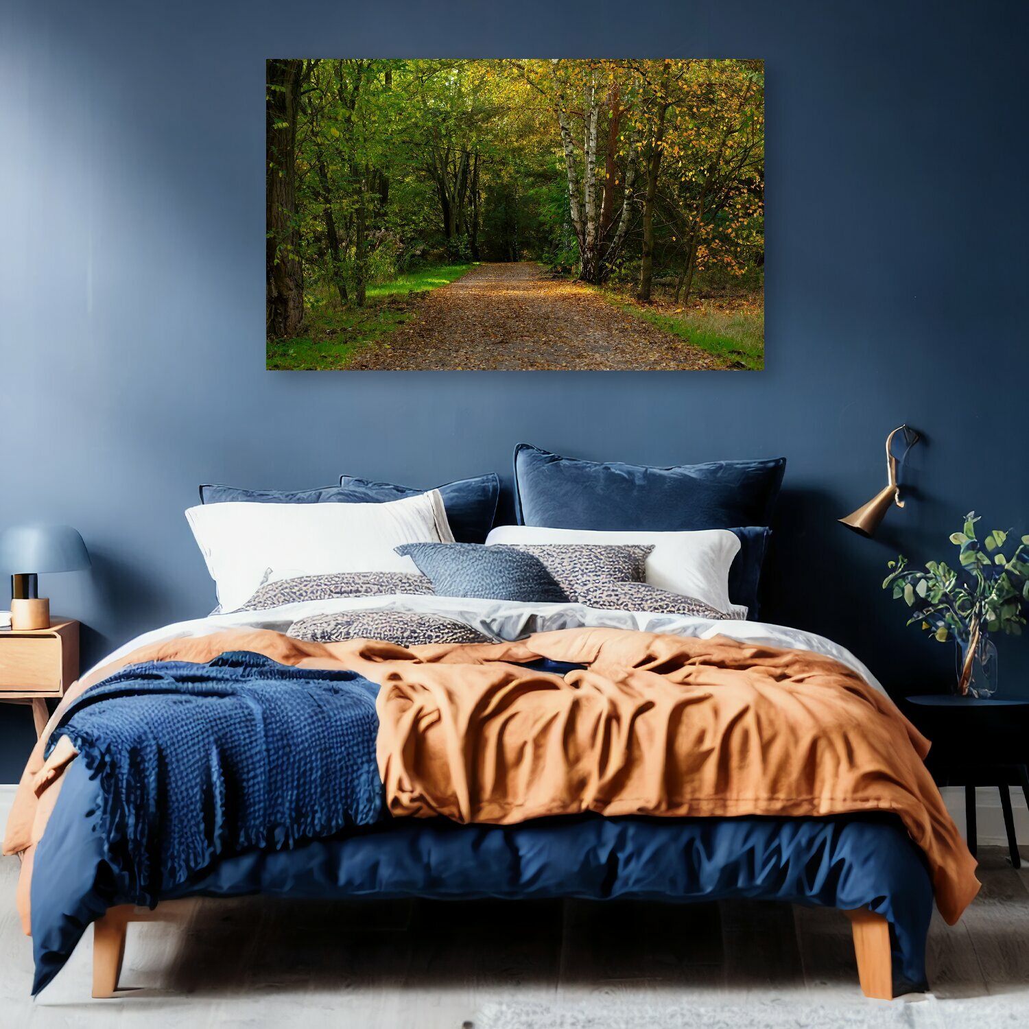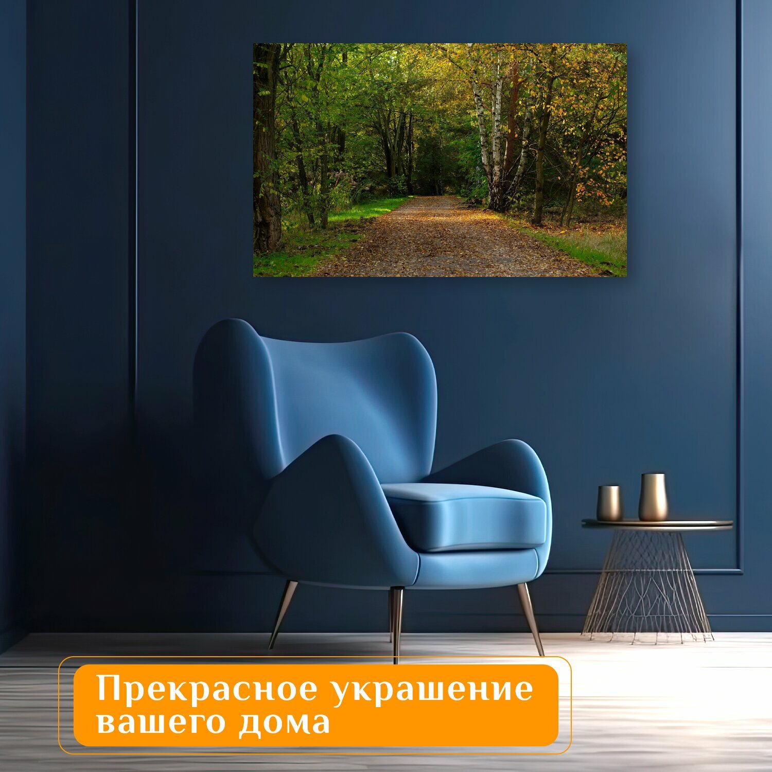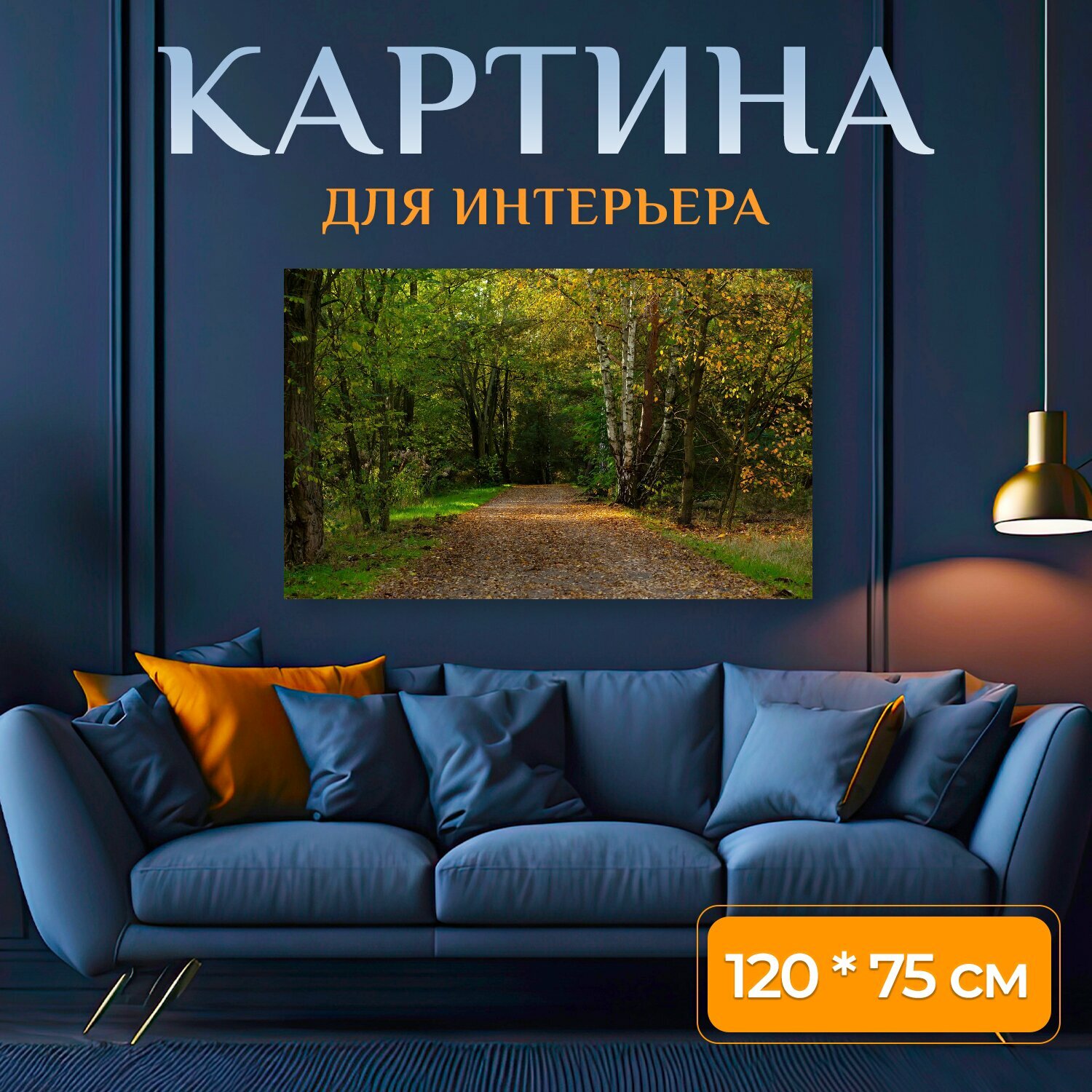 10 цен на Картина на холсте "Падение, лес, лесная тропа" на подрамнике 120х75 см. для интерьера