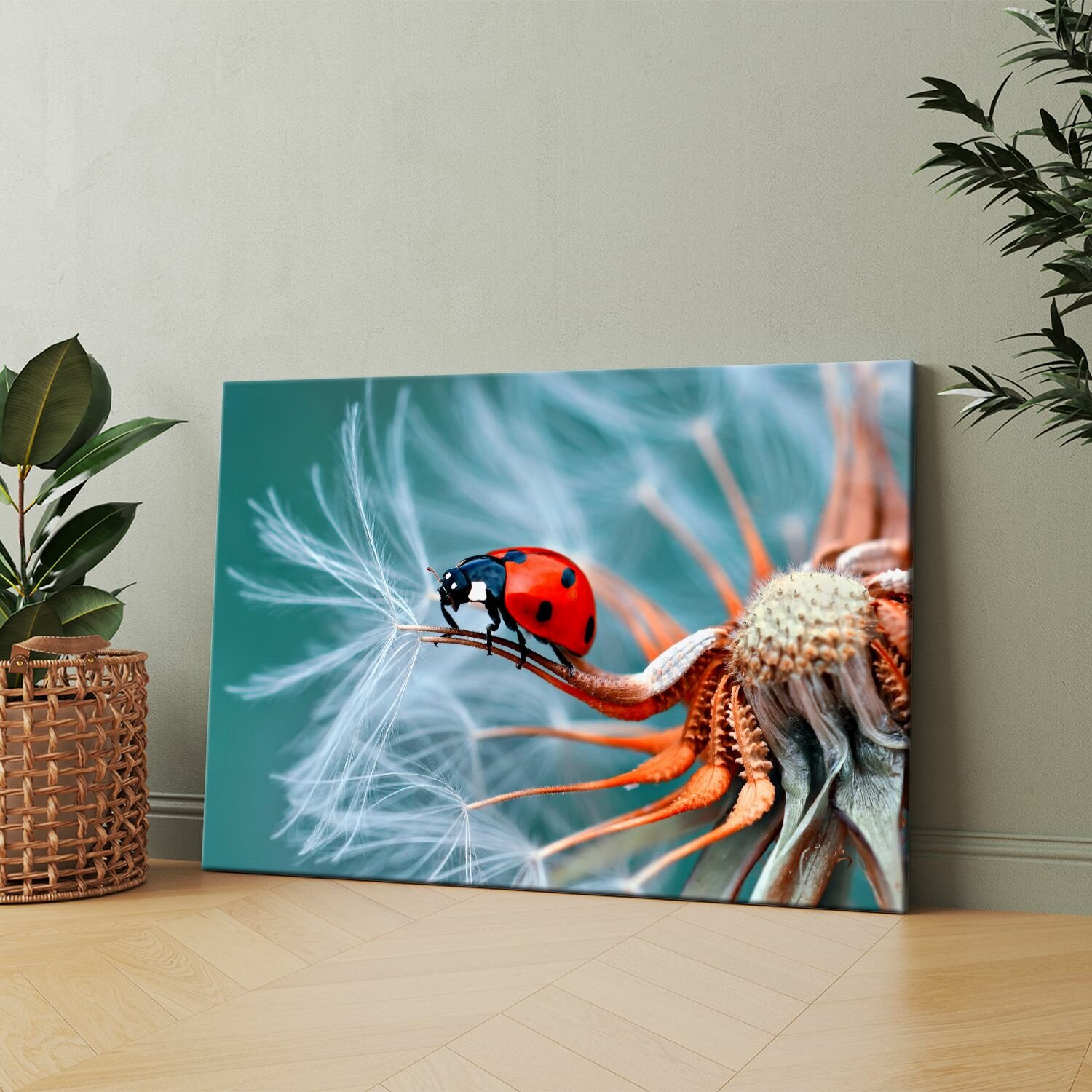 10 цен на Картина на холсте (Божья коровка на цветке денарии) 60x80 см. Интерьерная, на стену.
