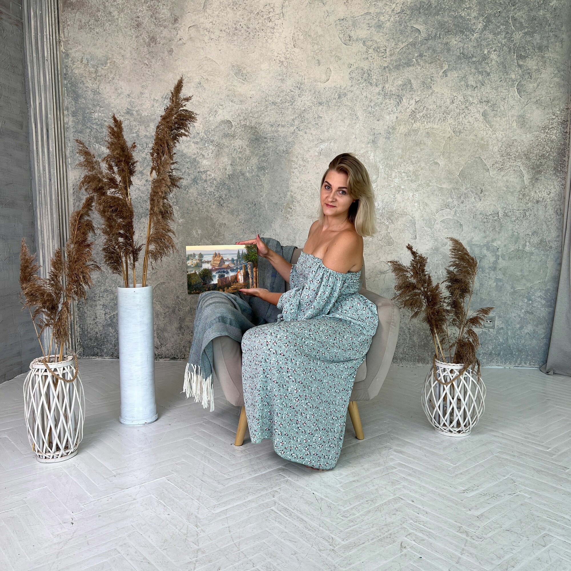 Отзывы на Картина на холсте "Картина деревни с женщиной и ребенком" 20x30 см. Интерьерная, на стену.