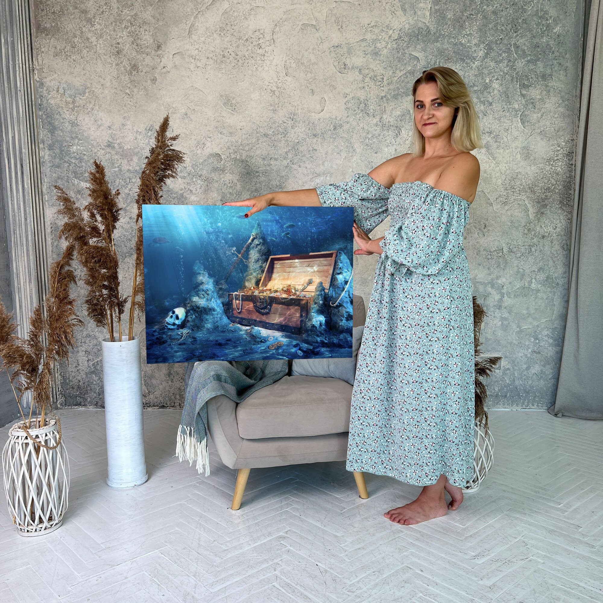 10 цен на Картина на холсте "Изображение морского животного в лодке" 60x80 см. Интерьерная, на стену.