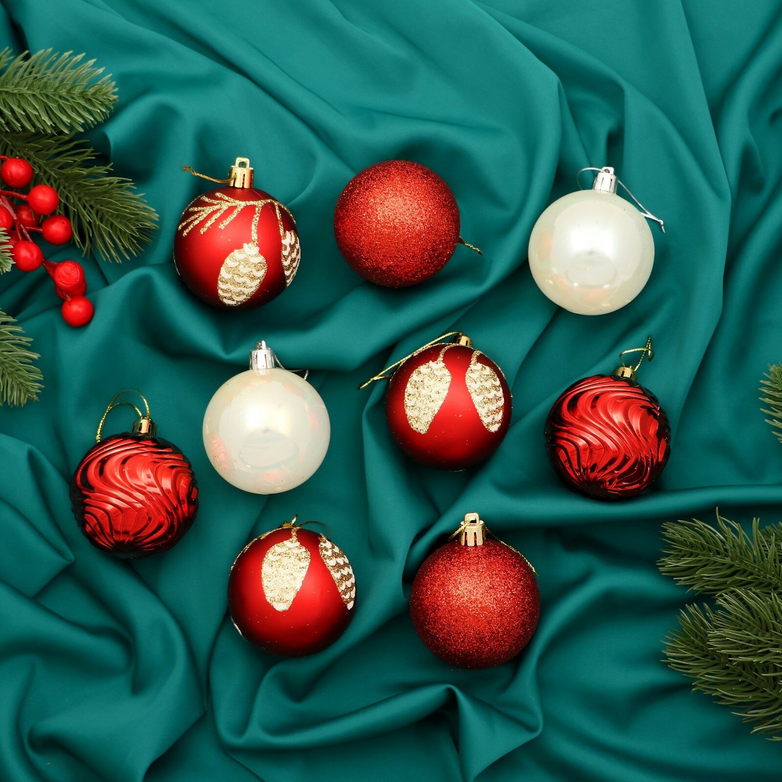 Отзывы на Набор шаров пластик d-6 см, 9 шт "Мелодия" волны ёлочки, красный белый