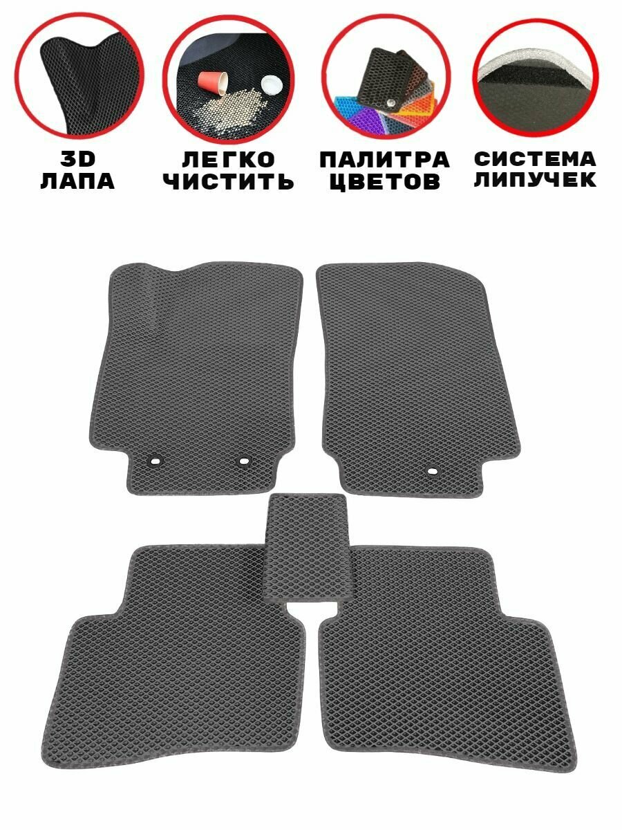 10 цен на Комплект ковриков EVA/ЭВА для Buick Envision 2 (Бьюик Инвижн 2), 2020-2024 гг., с 3Д лапой, серый ромб с темно серым кантом