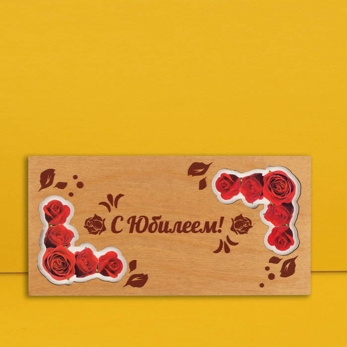 Отзывы на Конверт для денег с деревянным элементом "С Юбилеем" красные розы, 16х8 см, 2 штуки