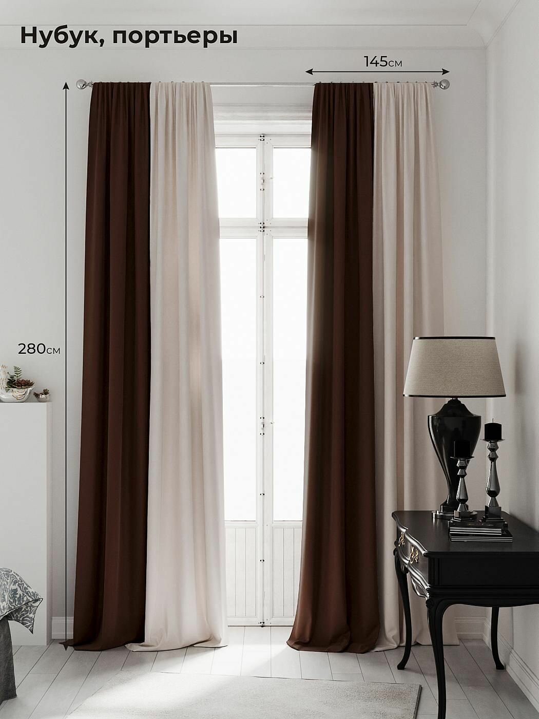 Комплекты штор AT HOME Нобиус-09-280 см высота 280 см, ширина 145 см, крепление - шторная лента, Бежевый информация: