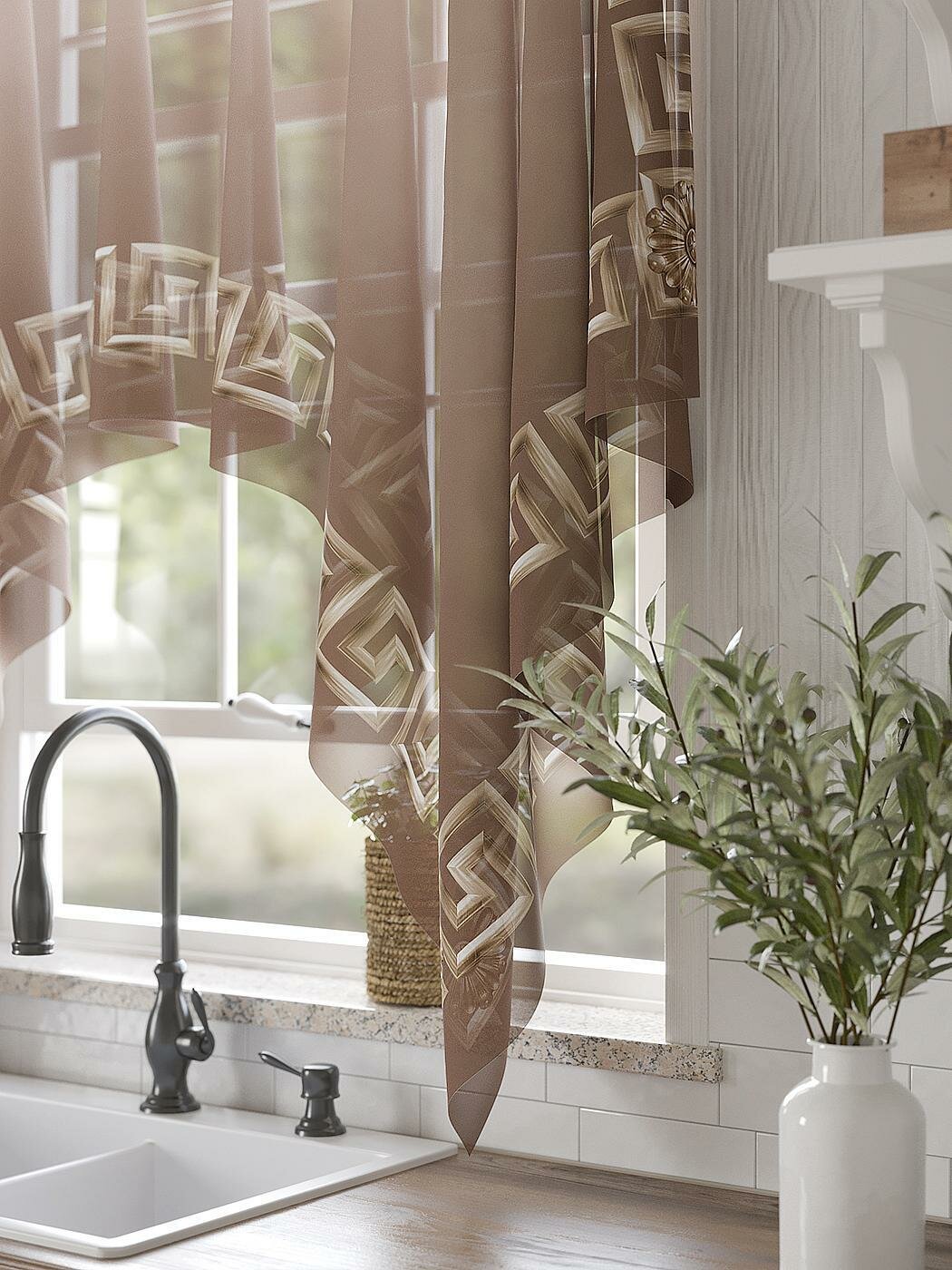 Комплекты штор AT HOME Велминс (коричневый) высота 145 см, ширина 200 см, крепление - шторная лента, Бежевый информация: