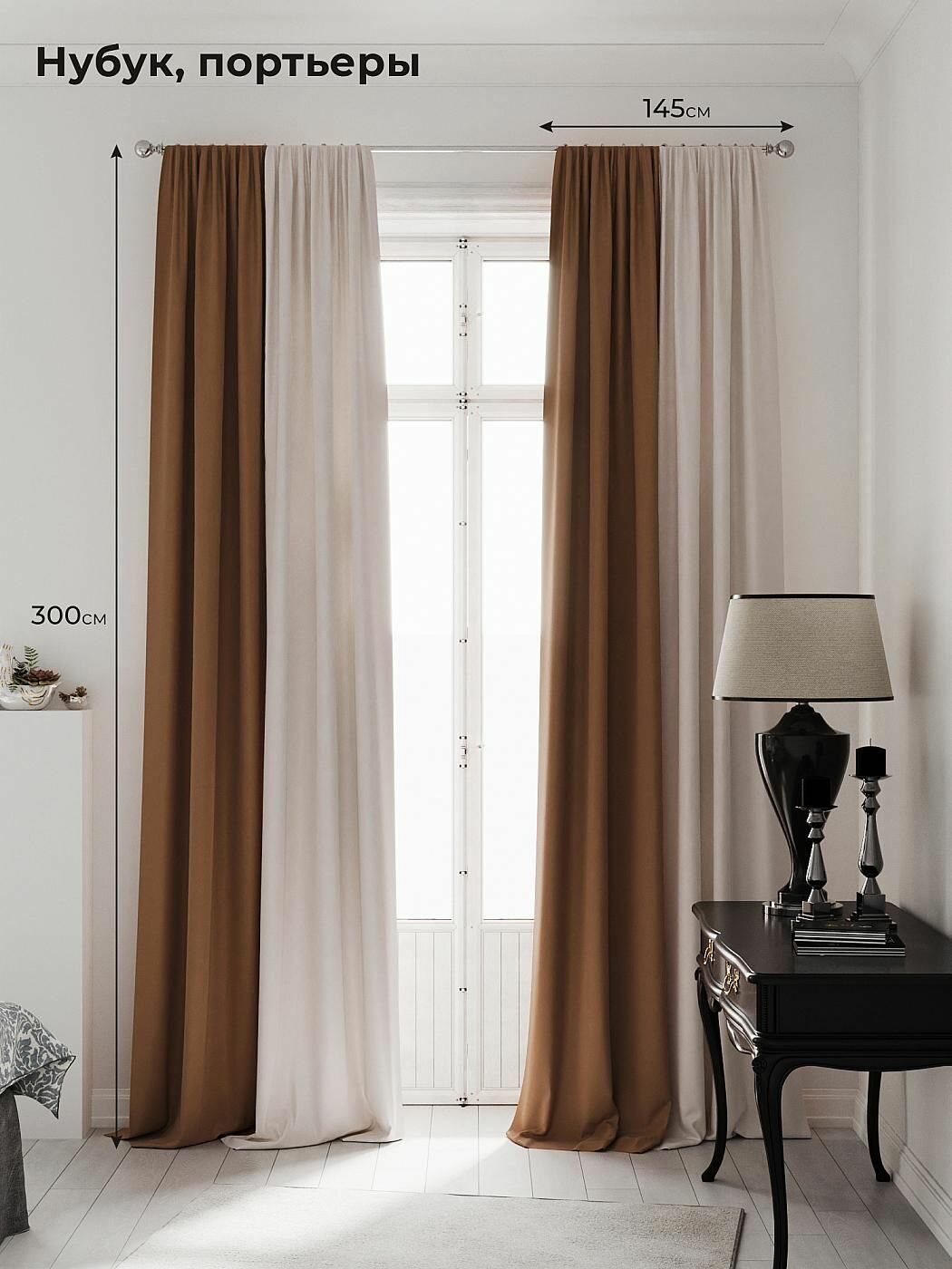 Комплекты штор AT HOME Нобиус-07-300 см высота 300 см, ширина 145 см, крепление - шторная лента, Бежевый информация: