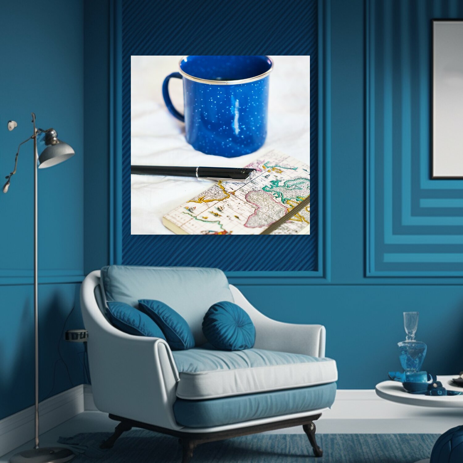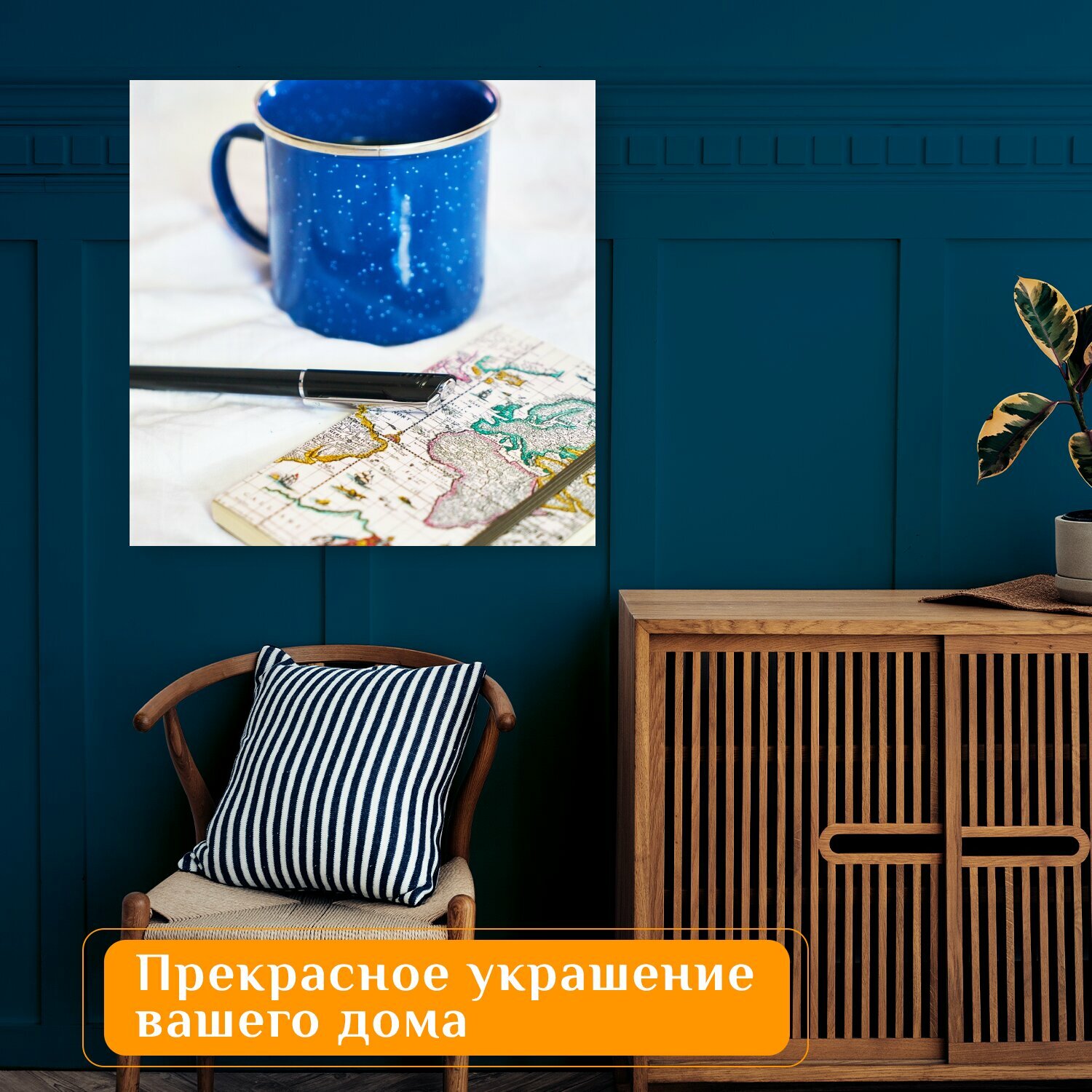 10 цен на Картина на холсте "Чашка, синий, кофе" на подрамнике 75х75 см. для интерьера