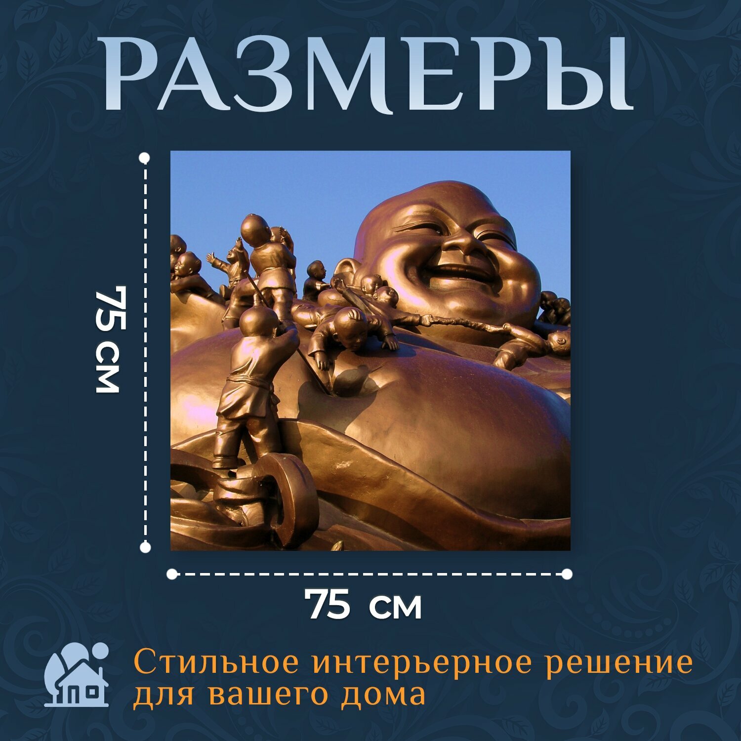 10 цен на Картина на холсте "Бронзовая статуя, будда, монах" на подрамнике 75х75 см. для интерьера