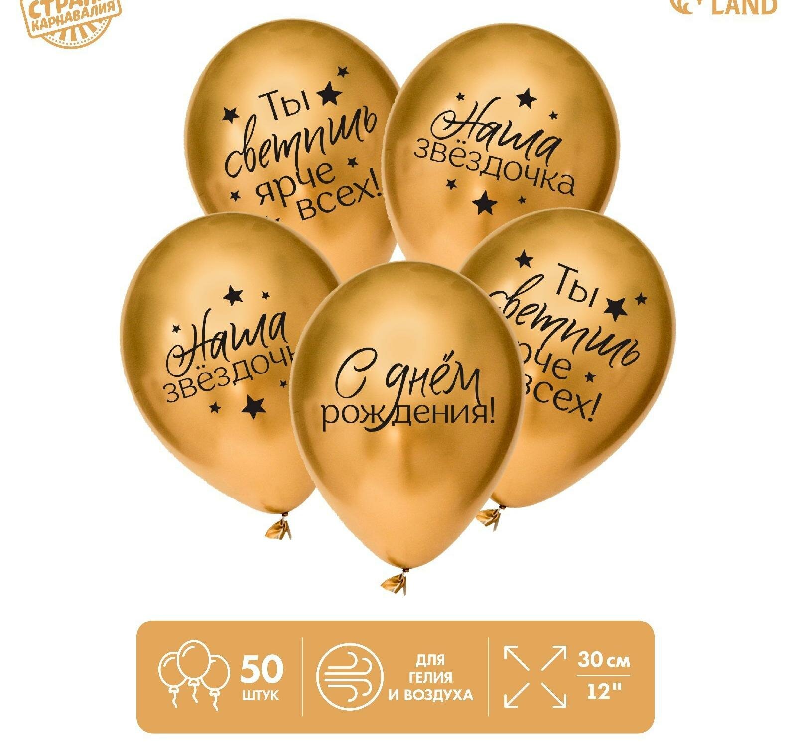 10 цен на Шар латексный 12" "Наша звёздочка", золото набор 50 шт.