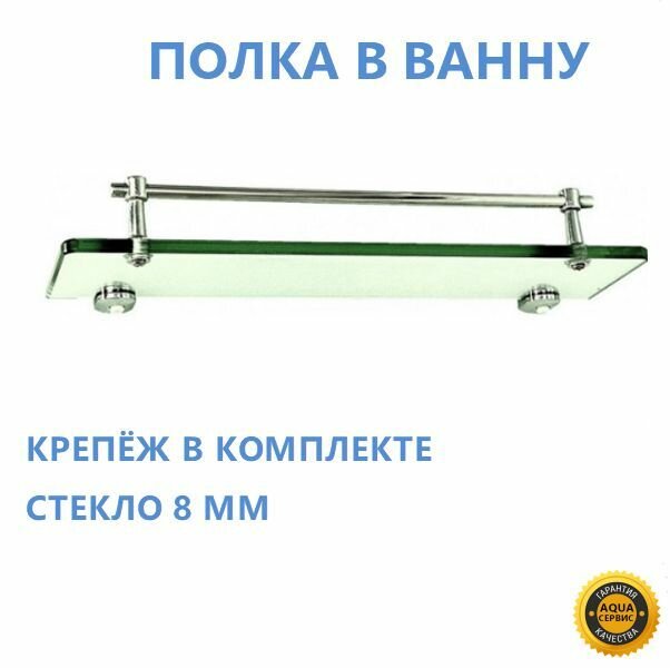 Отзывы на Полка для ванной, стеклянная однорядная с бортиком и креплением к стене, стекло толщиной 8 мм, крепеж и бортик хромированные глянцевые, 1 ярусная, ERLIT