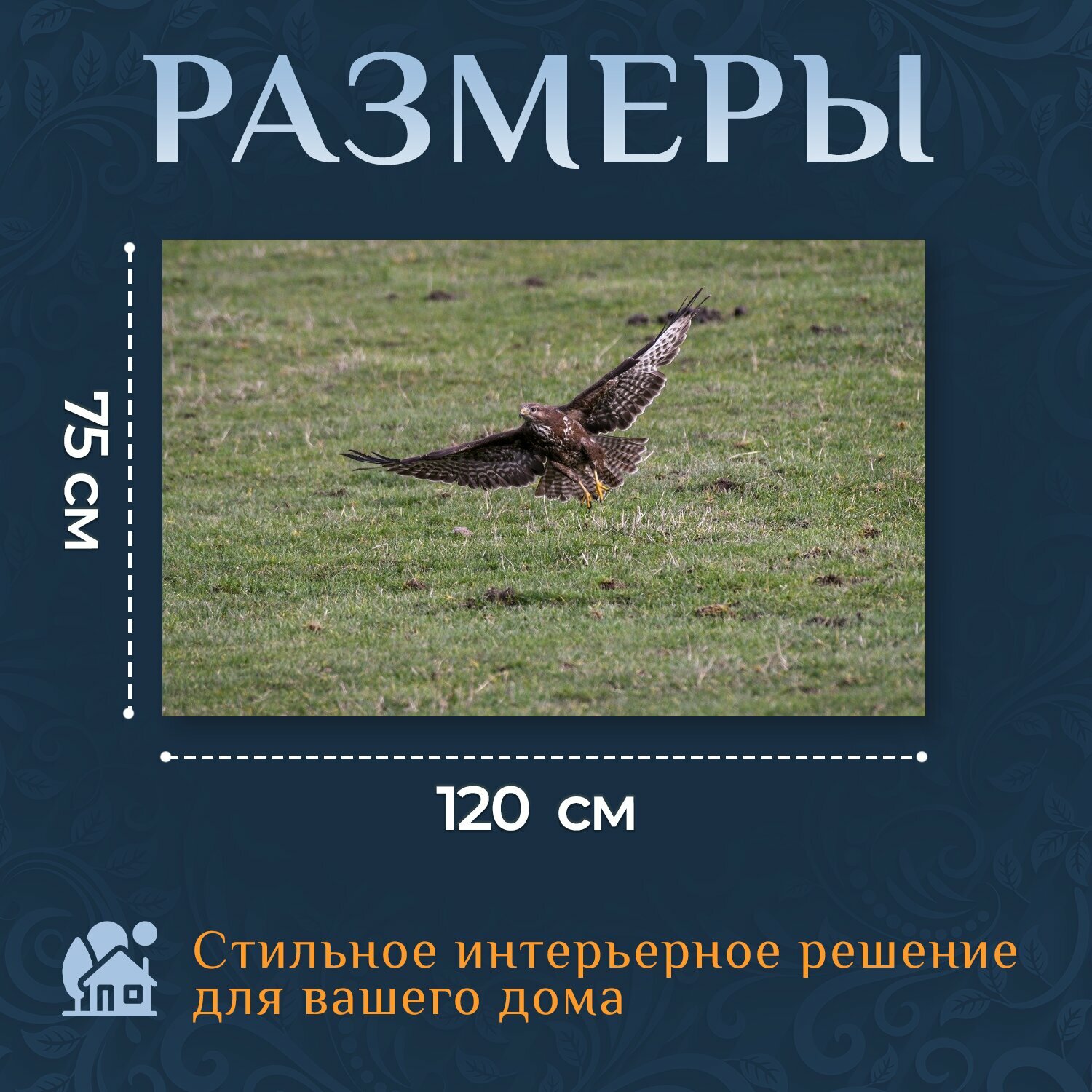 Отзывы на Картина на холсте "Обыкновенный канюк, хищная птица, птица" на подрамнике 120х75 см. для интерьера