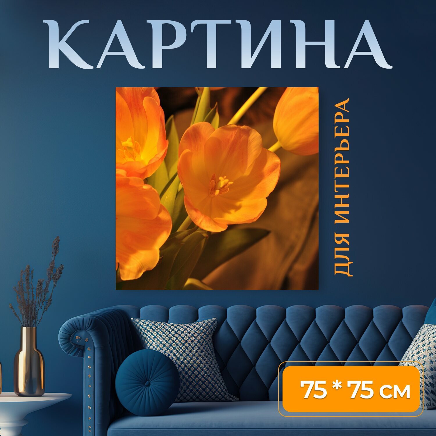 10 цен на Картина на холсте "Цветок, природа, тюльпан" на подрамнике 75х75 см. для интерьера