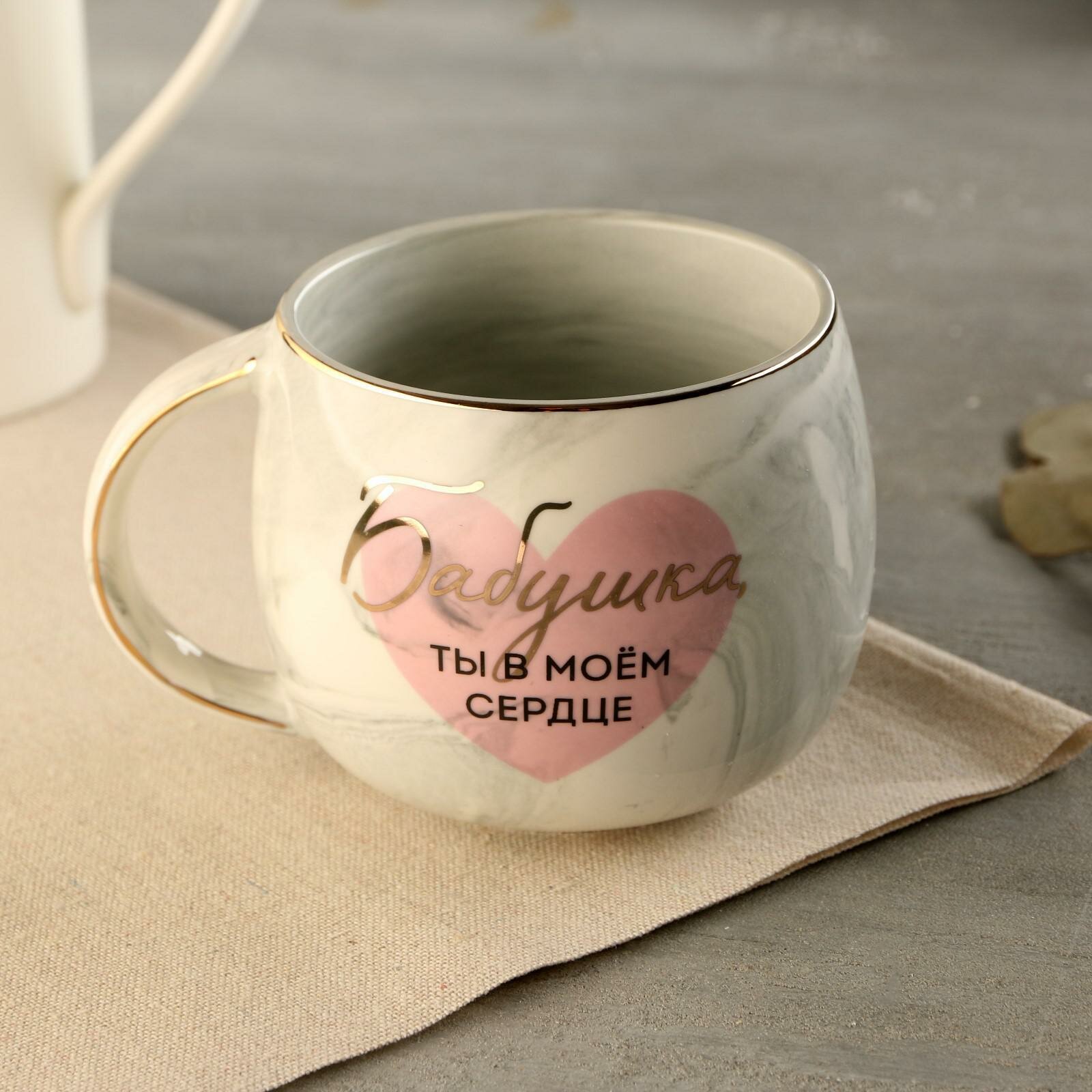 Кружка керамическая «Бабушка, ты в моём сердце», 350 мл, цвет серый информация: