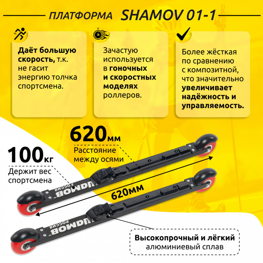 10 цен на Лыжероллеры коньковые Shamov 01-1 с креплением 02 системы SNS, колесо полиуретан 80 мм / Шамов