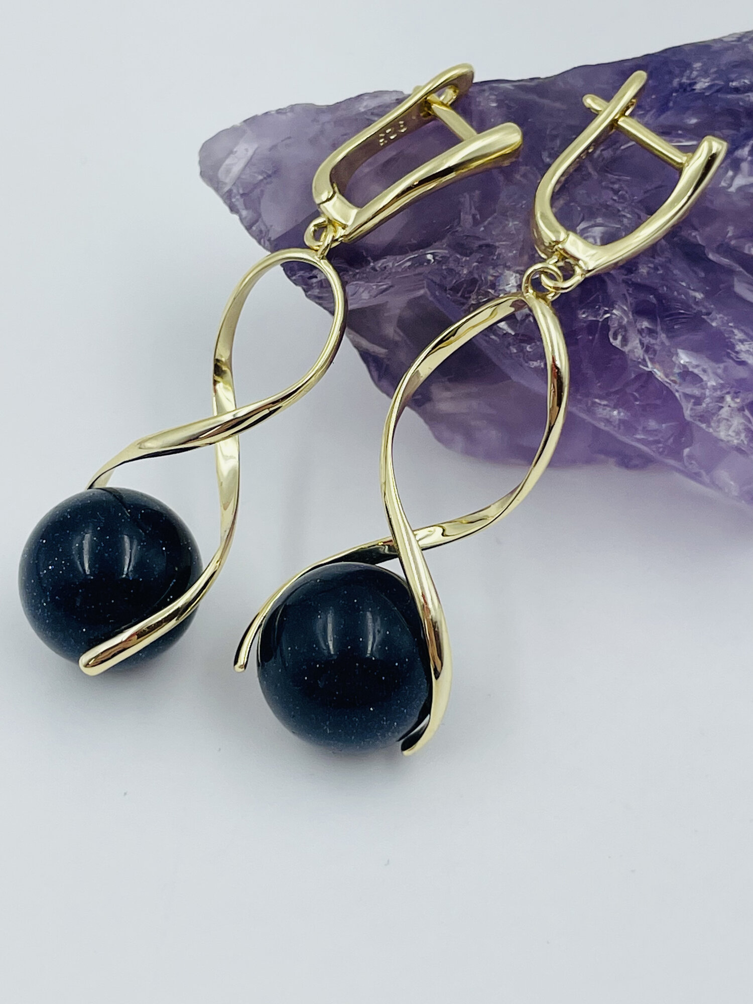 Серьги с натуральным камнем - Синий авантюрин информация: