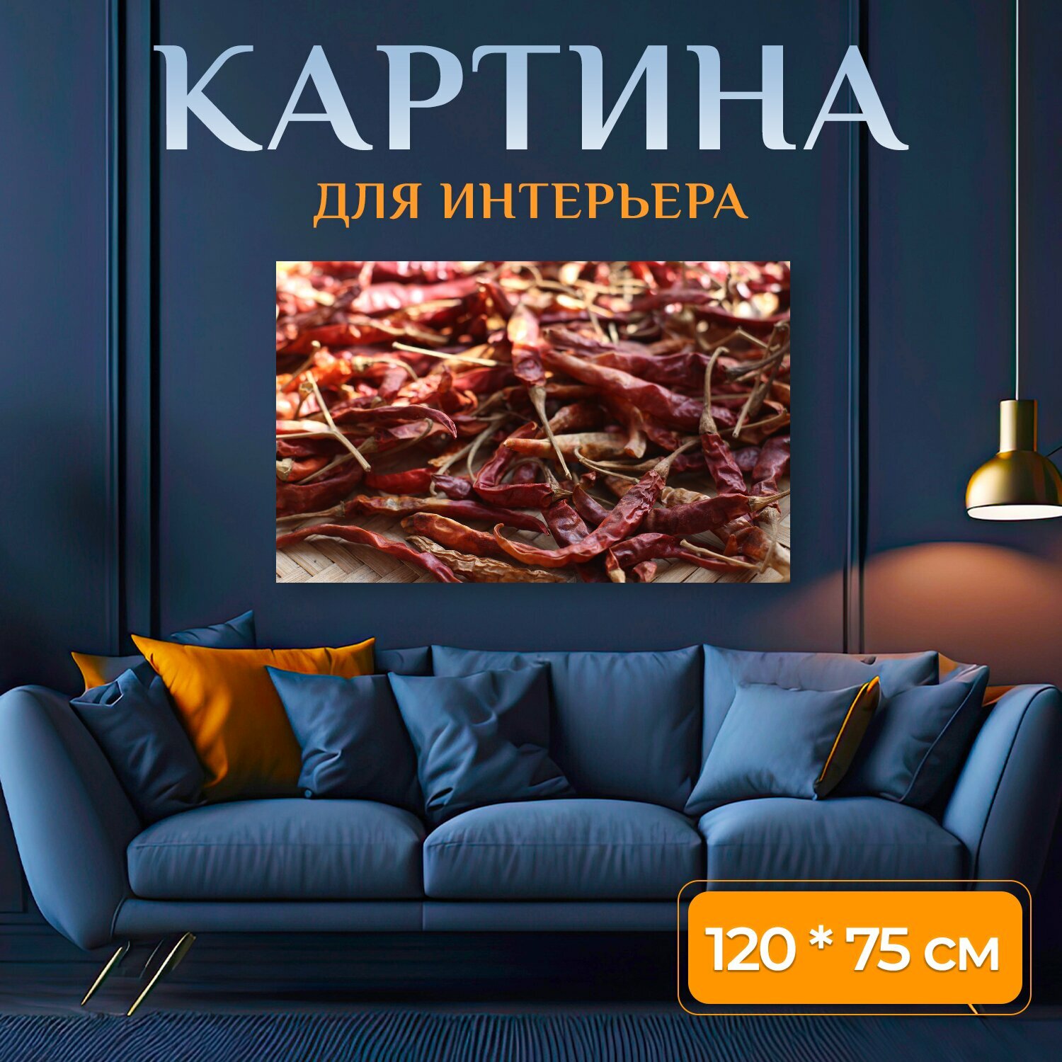 Картина на холсте "Перец чили, сушеный, сушка" на подрамнике 120х75 см. для интерьера информация: