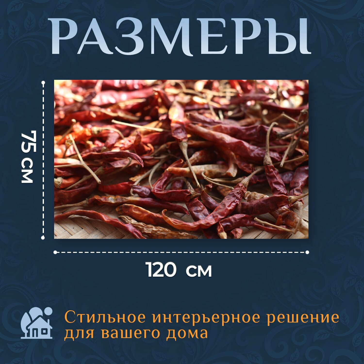 Отзывы на Картина на холсте "Перец чили, сушеный, сушка" на подрамнике 120х75 см. для интерьера