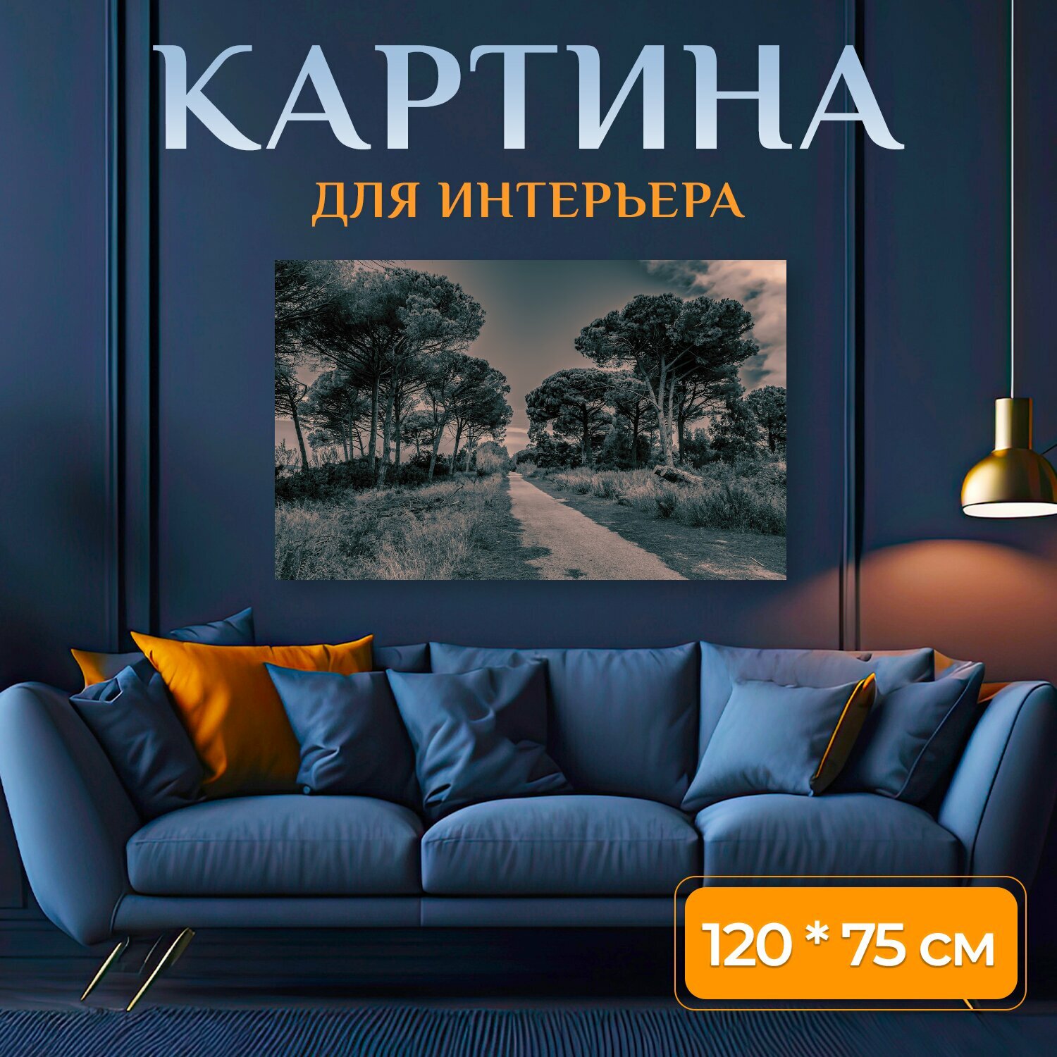 10 цен на Картина на холсте "Дерево, путь, лес" на подрамнике 120х75 см. для интерьера