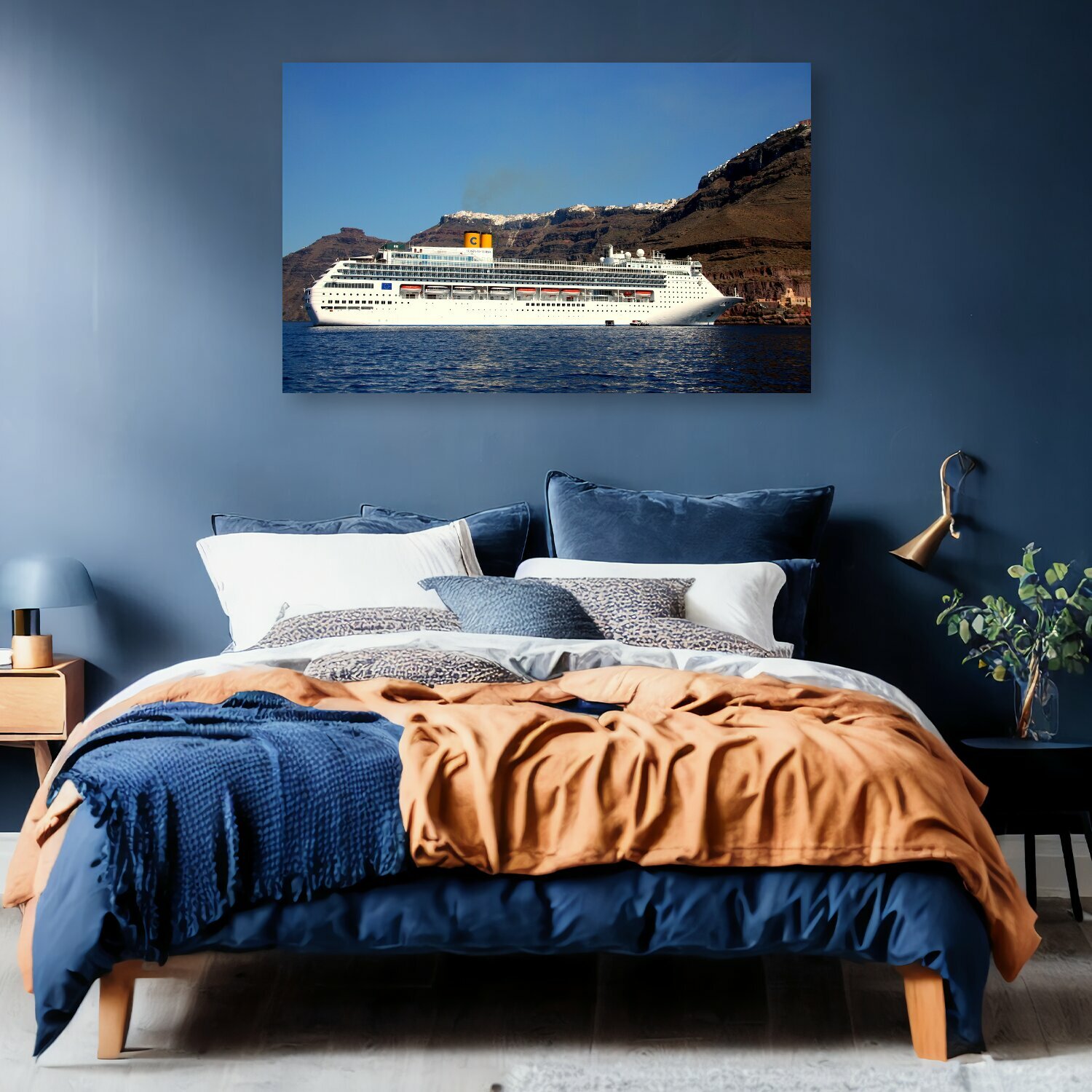 10 цен на Картина на холсте "Санторин, греческий остров, киклады" на подрамнике 120х75 см. для интерьера