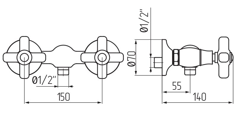 Смеситель на раковину настенный Эверест B46-350 с круглым поворотным изливом, кран-буксы 1/2", хром