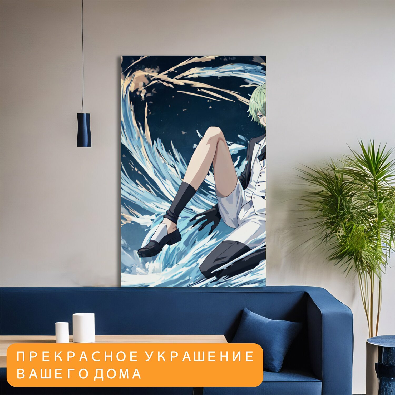 Картина на холсте ценителям искусства "Мультфильмы, аниме, на волнах" на подрамнике 75х120 см. для интерьера информация:
