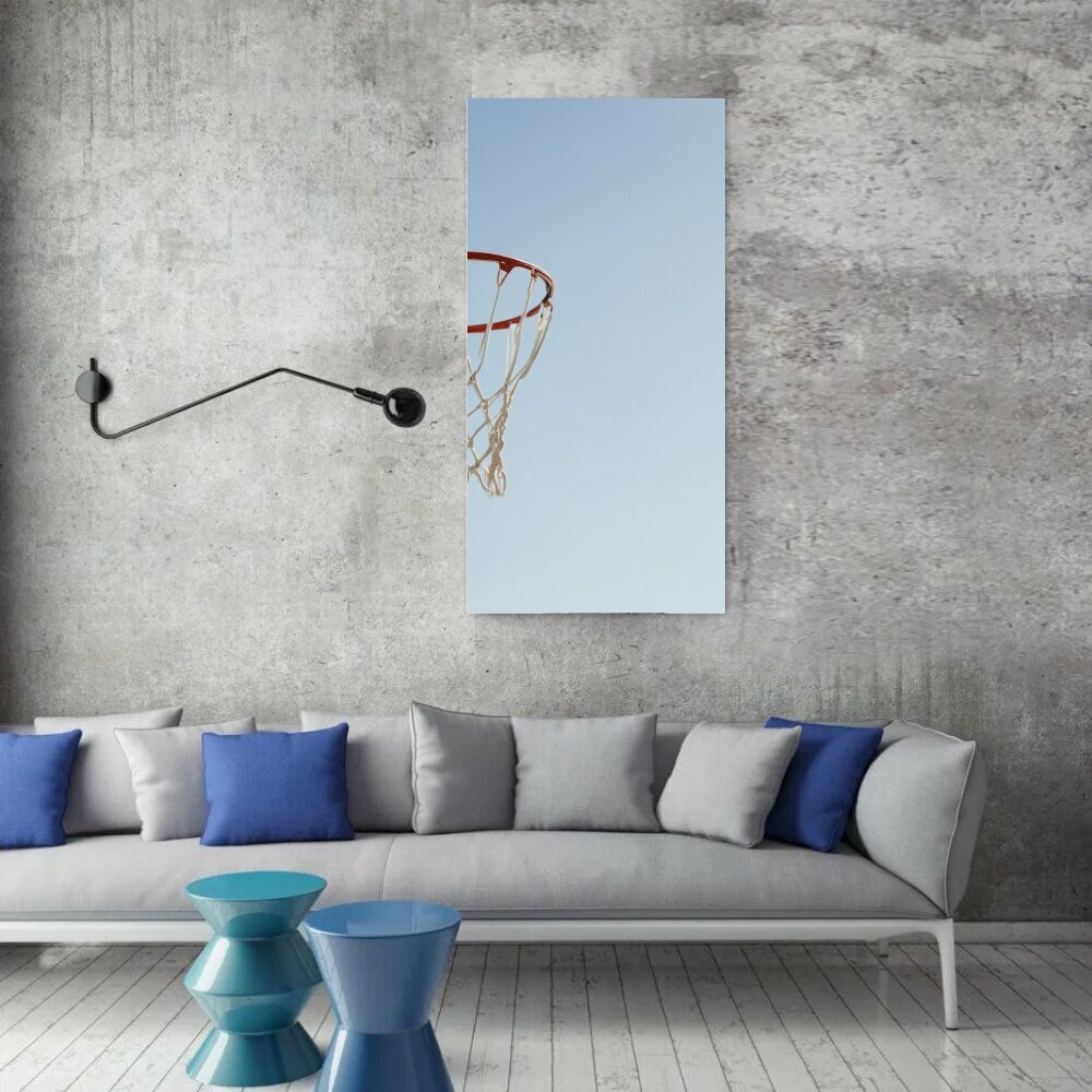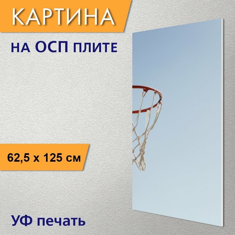 Вертикальная картина на ОСП для любителей спорта "Спортивные игры, баскетбол, кольцо" 62x125 см. для интерьера на стену информация: