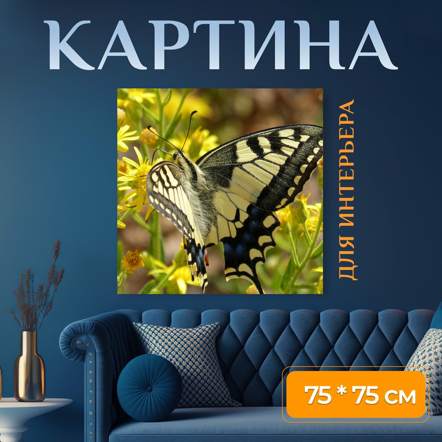 10 цен на Картина на холсте "Макаон, папилио махаон, бабочка" на подрамнике 75х75 см. для интерьера