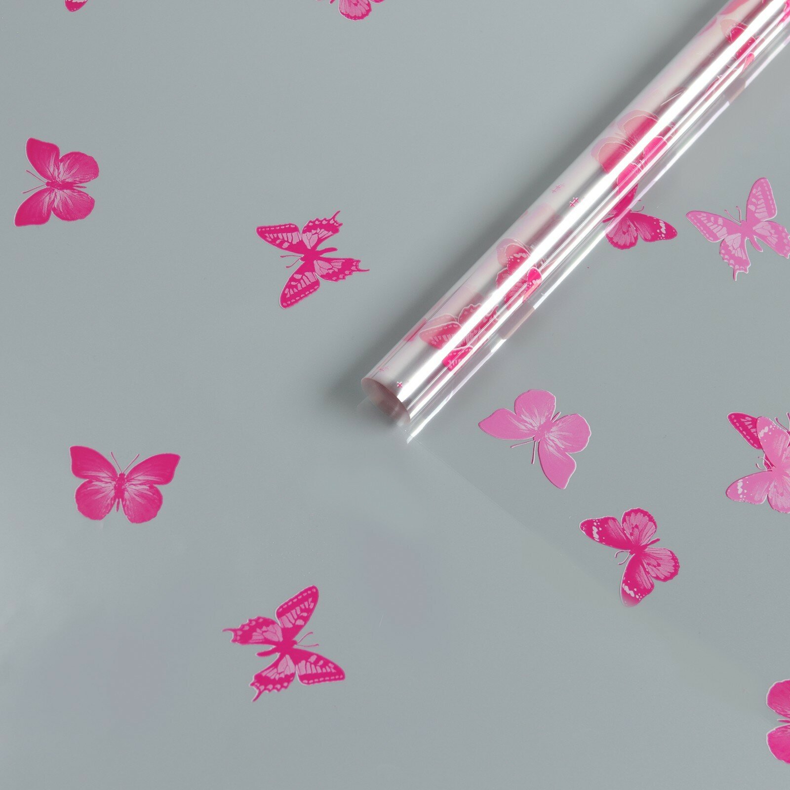 Пленка для цветов "Бабочки" розовый+белый 0,7 х 8.2 м, 40мкм информация: