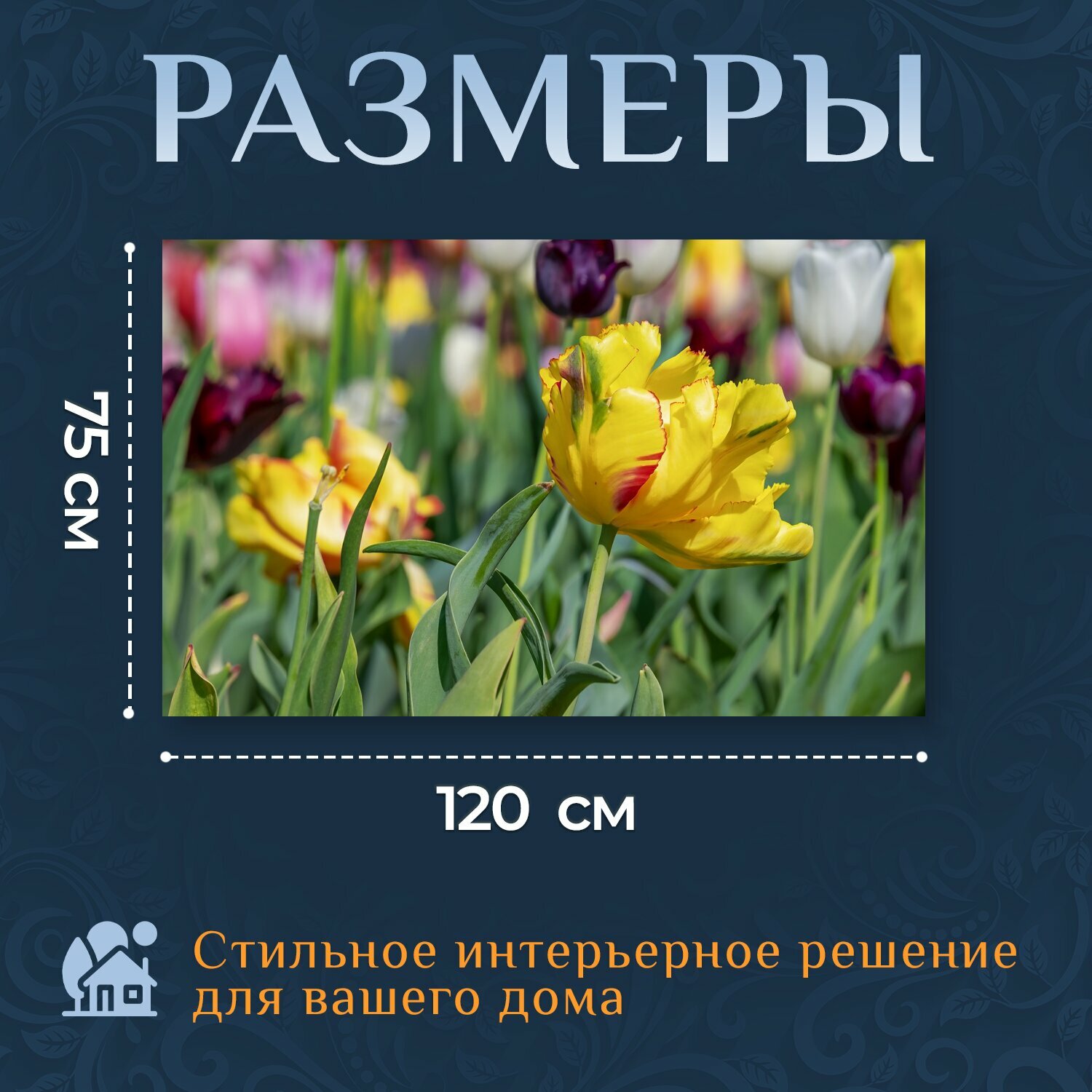 Отзывы на Картина на холсте "Тюльпан, цвести, триколор" на подрамнике 120х75 см. для интерьера