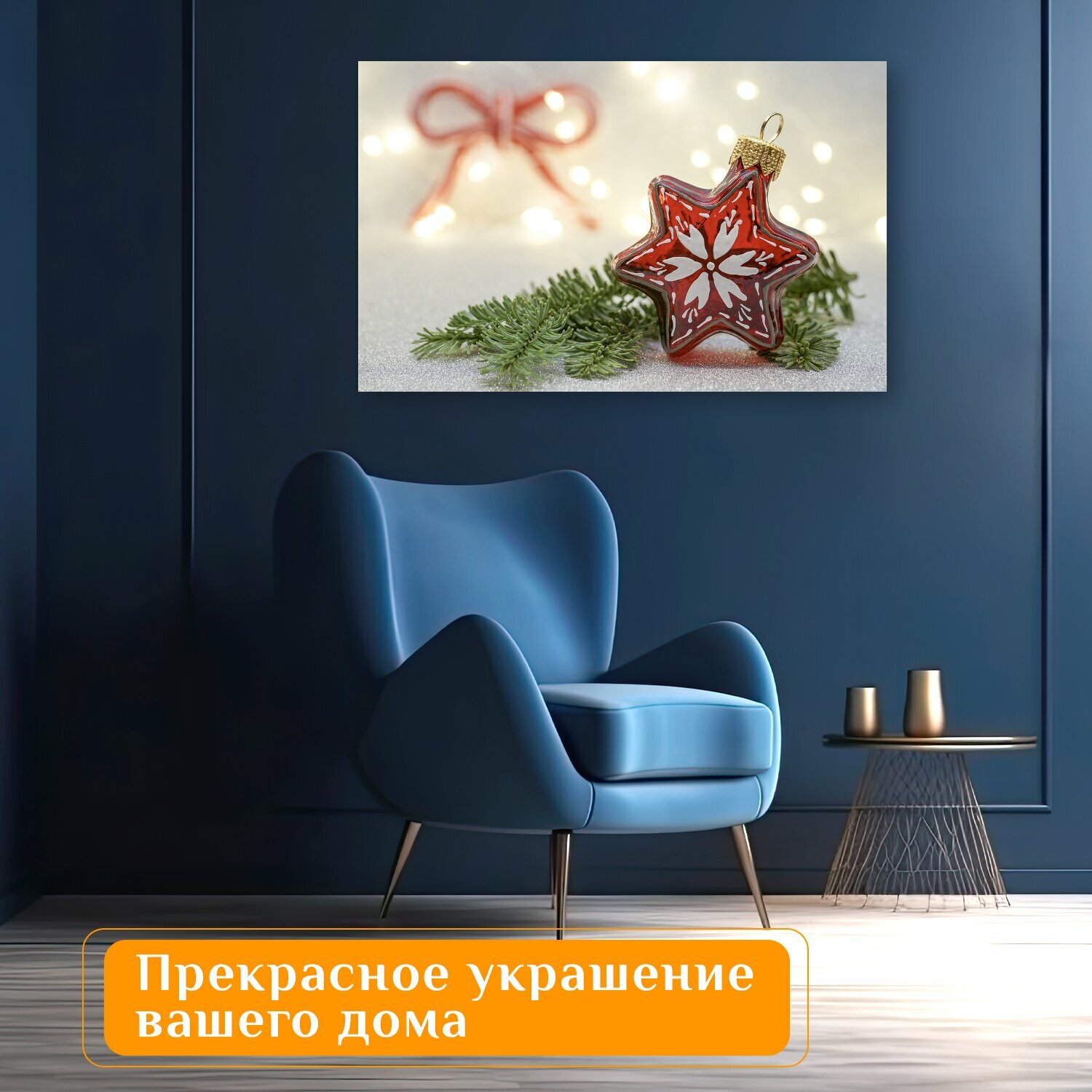 Картина на холсте "Рождество, рождественские украшения, рождественская звезда" на подрамнике 120х75 см. для интерьера информация: