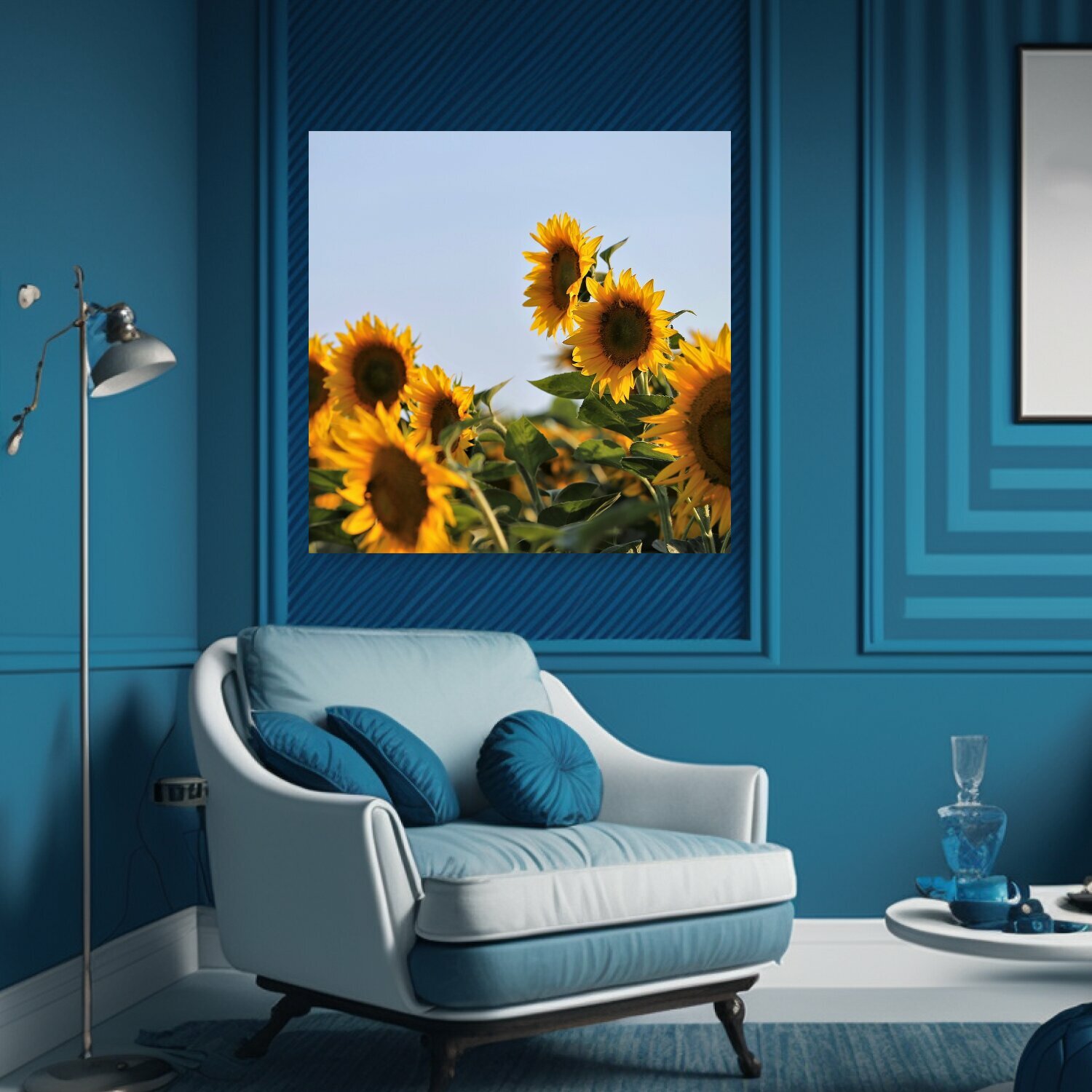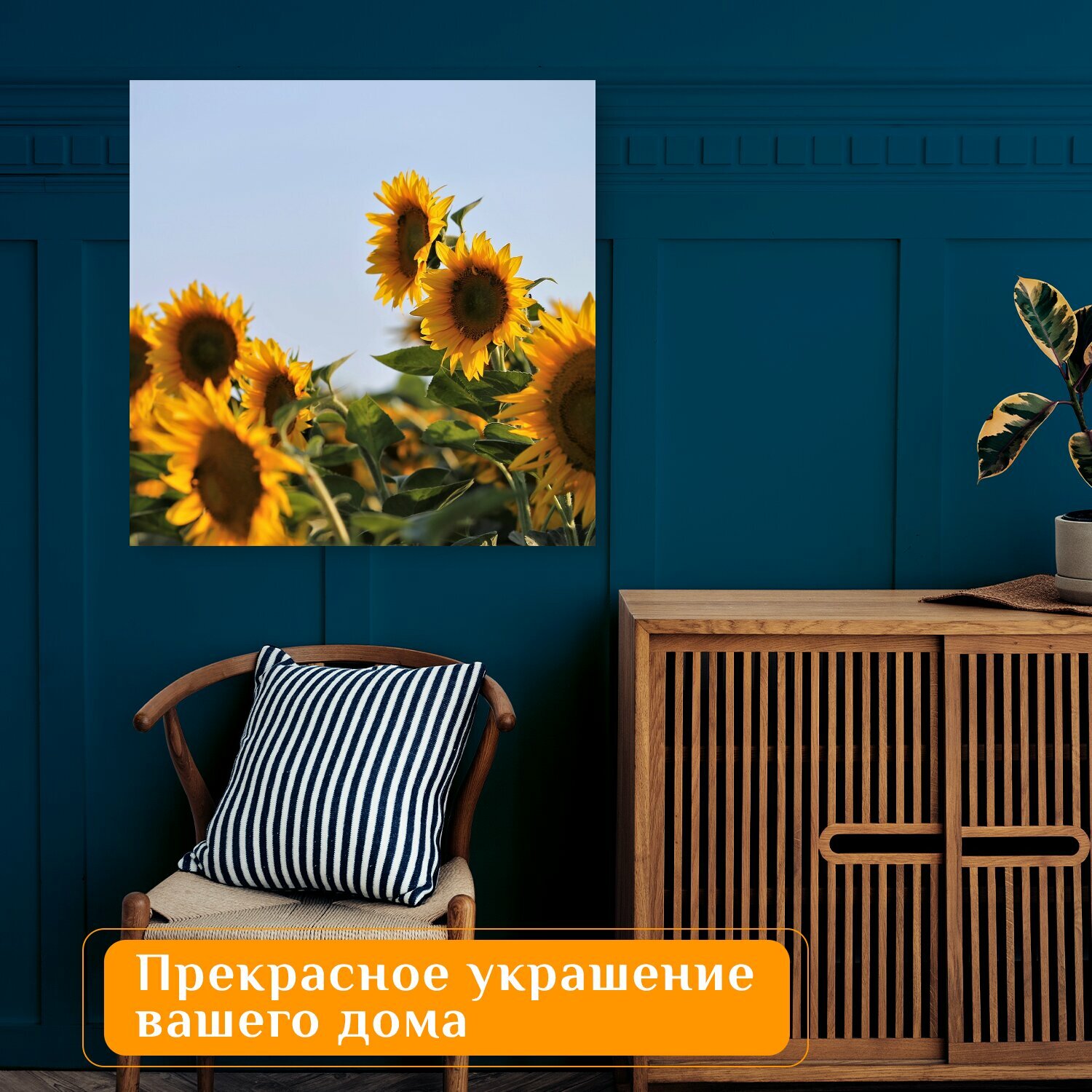 10 цен на Картина на холсте "Сельское хозяйство, подсолнухи, блум" на подрамнике 75х75 см. для интерьера