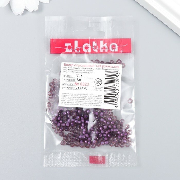 10 цен на Бисер "Zlatka" 08/0, 3 мм, 10 г 0323 лиловый