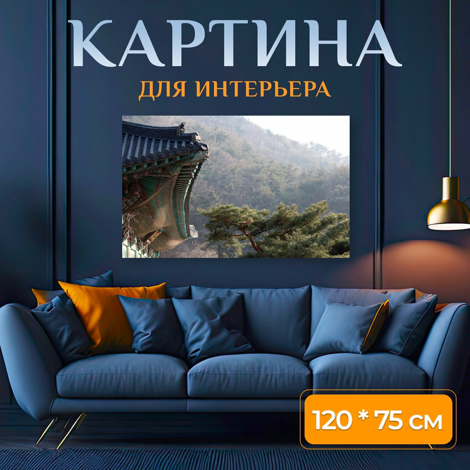 Картина на холсте "Тхэджо гора, гаквонса, храм" на подрамнике 120х75 см. для интерьера информация:
