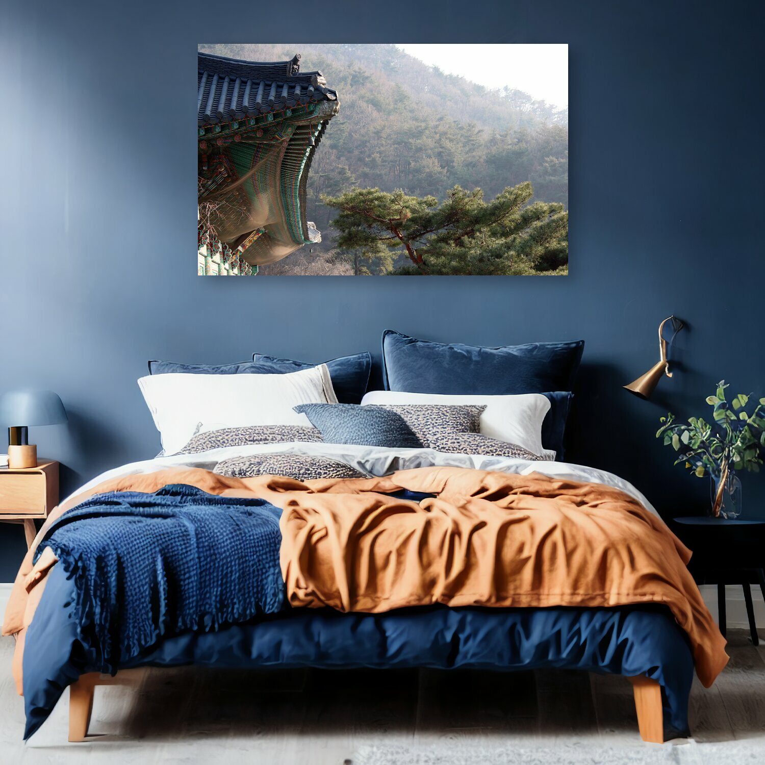 10 цен на Картина на холсте "Тхэджо гора, гаквонса, храм" на подрамнике 120х75 см. для интерьера