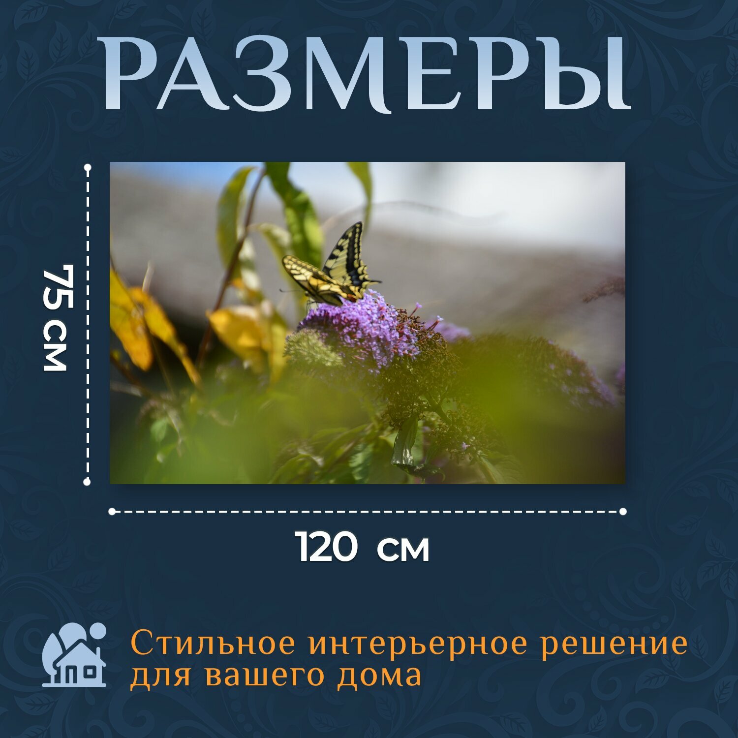 Отзывы на Картина на холсте "Бабочка, цветок, природа" на подрамнике 120х75 см. для интерьера