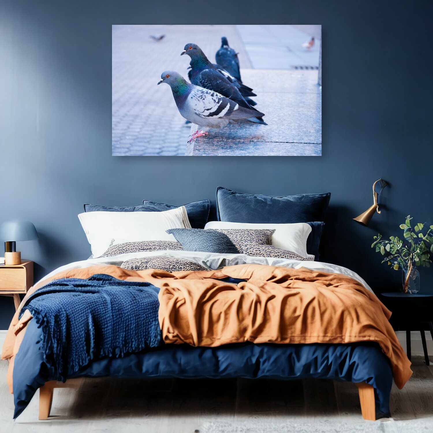 10 цен на Картина на холсте "Голубь, город, птица" на подрамнике 120х75 см. для интерьера