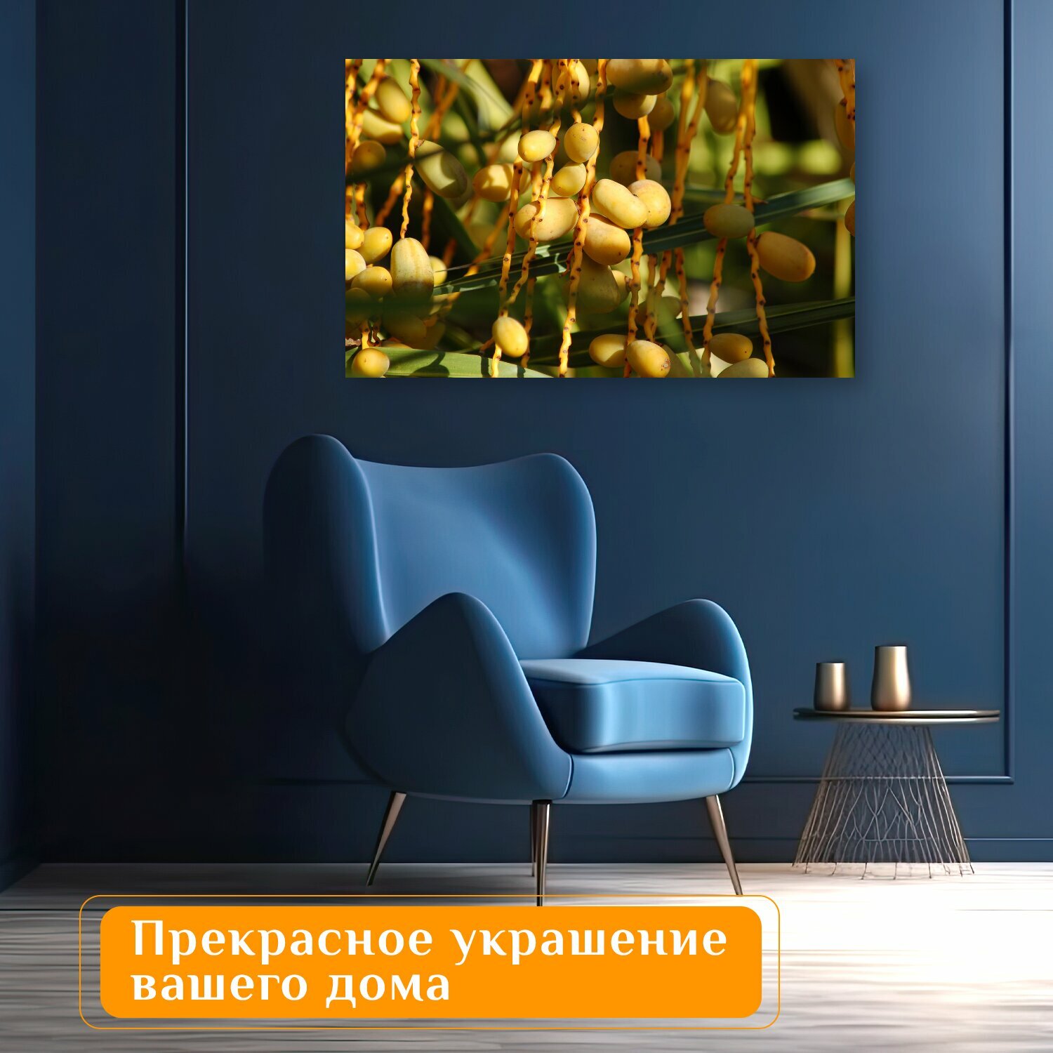 Отзывы на Картина на холсте "Пальма, желтые фрукты, даты" на подрамнике 120х75 см. для интерьера