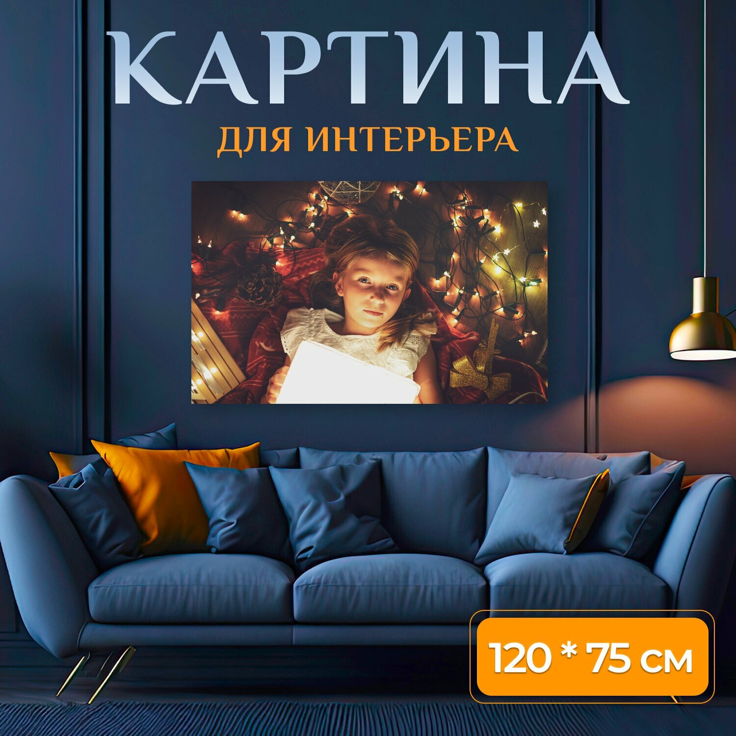 Картина на холсте "Девочка, ребенок, рождественские огни" на подрамнике 120х75 см. для интерьера информация: