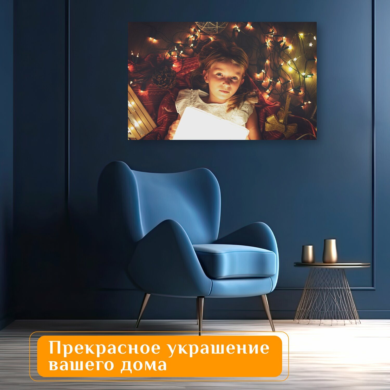 Отзывы на Картина на холсте "Девочка, ребенок, рождественские огни" на подрамнике 120х75 см. для интерьера
