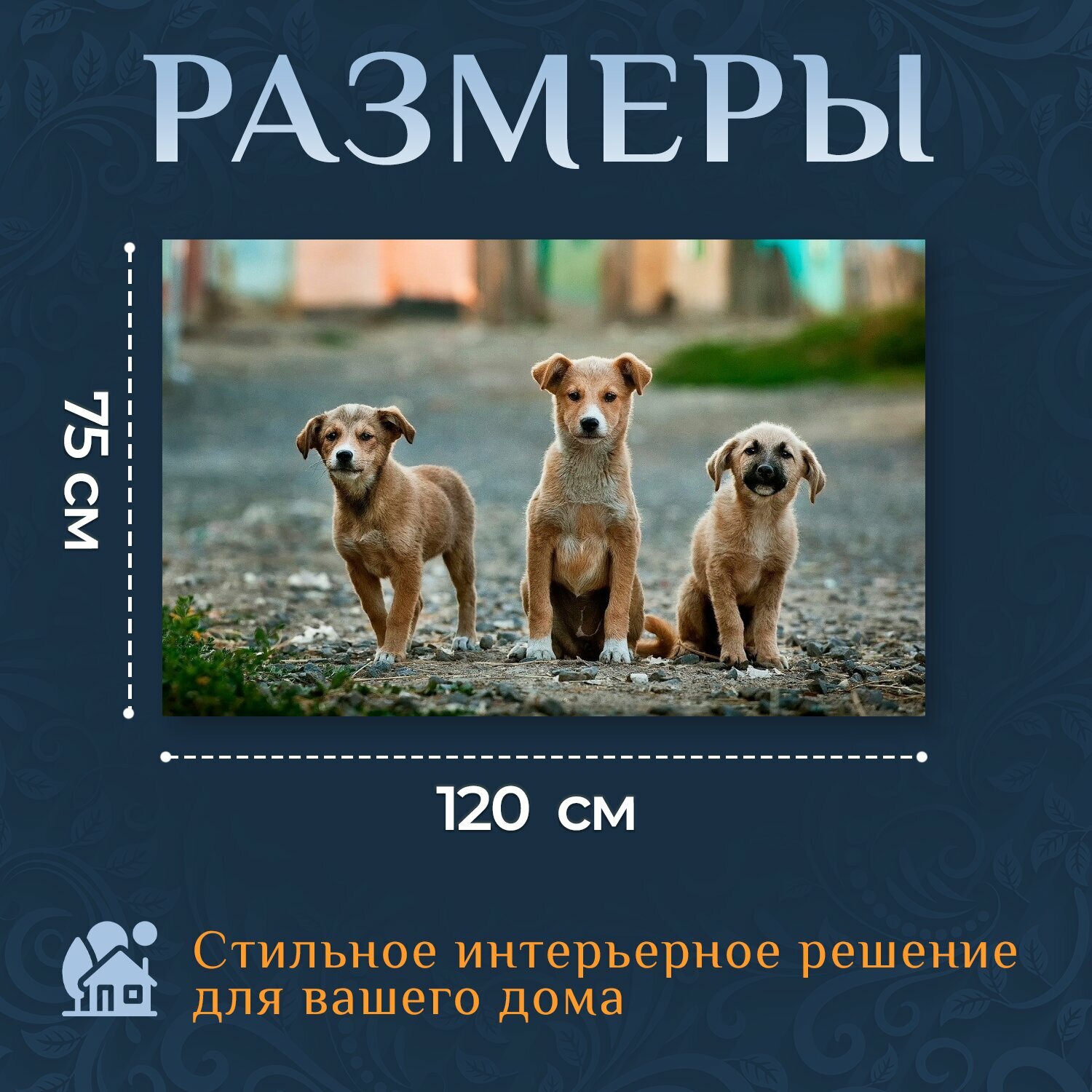 Картина на холсте "Собаки, щенки, домашние питомцы" на подрамнике 120х75 см. для интерьера информация: