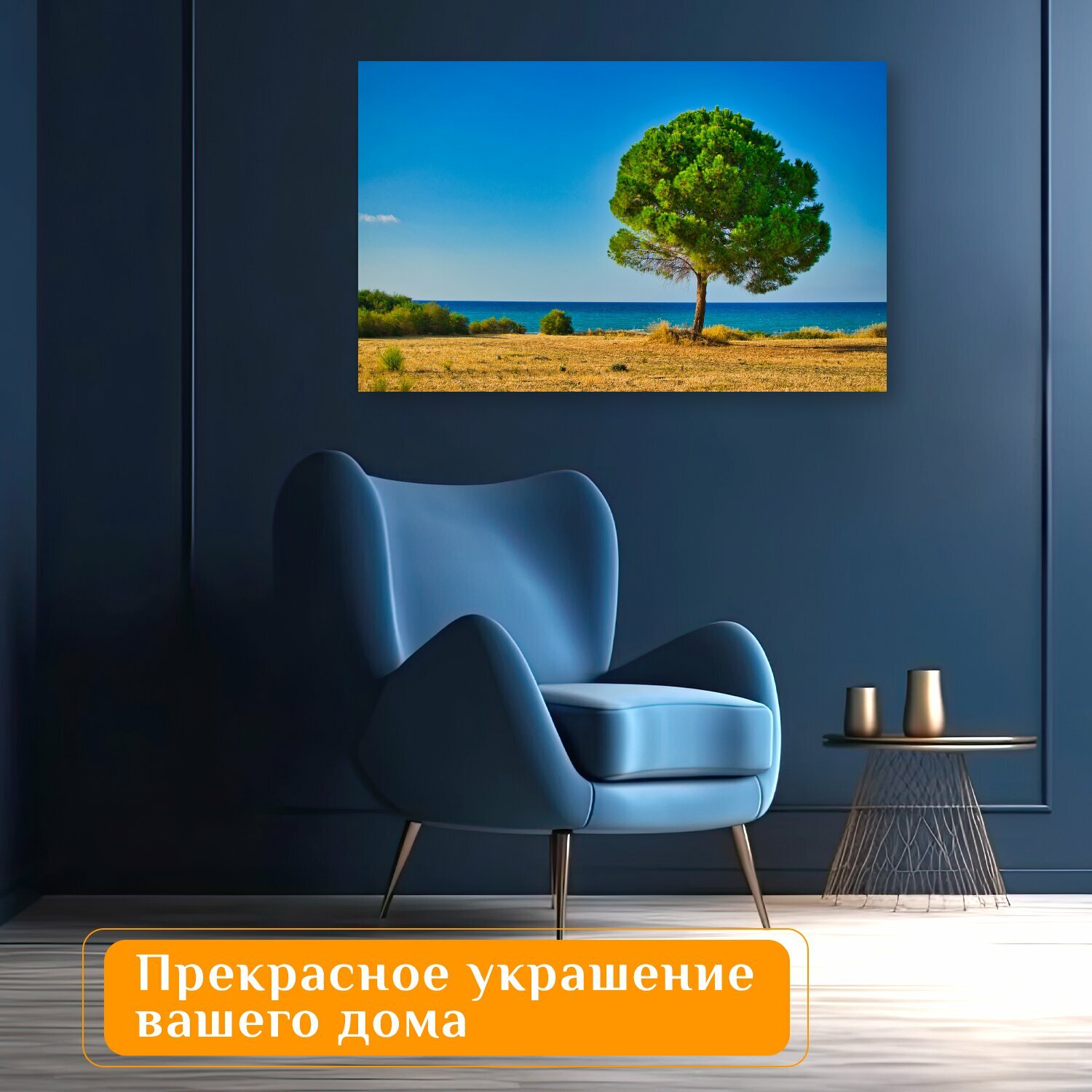 Картина на холсте "Дерево, пейзаж, море" на подрамнике 120х75 см. для интерьера информация: