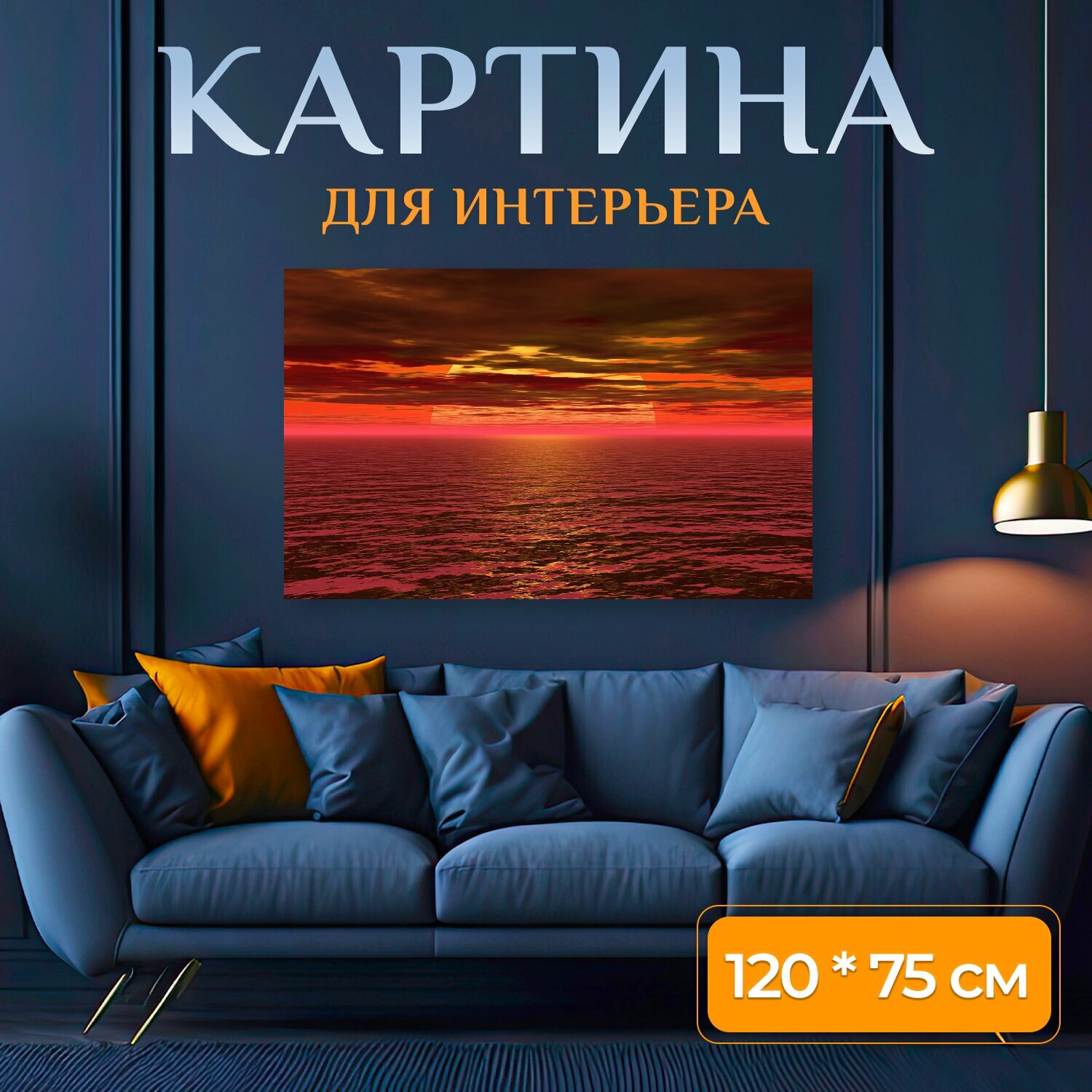 Картина на холсте "Солнце, заход солнца, небо" на подрамнике 120х75 см. для интерьера информация: