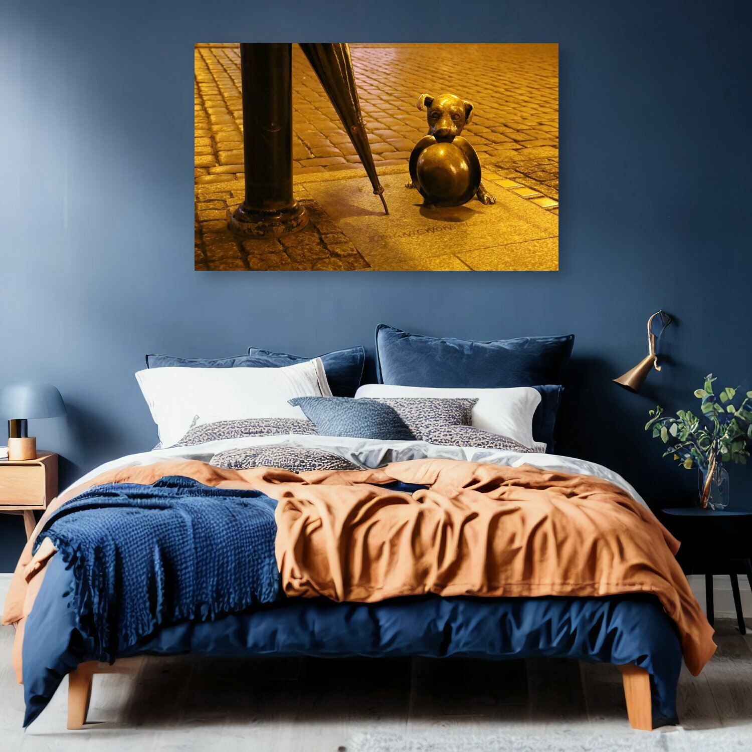 10 цен на Картина на холсте "Торунь, собака, статуя" на подрамнике 120х75 см. для интерьера