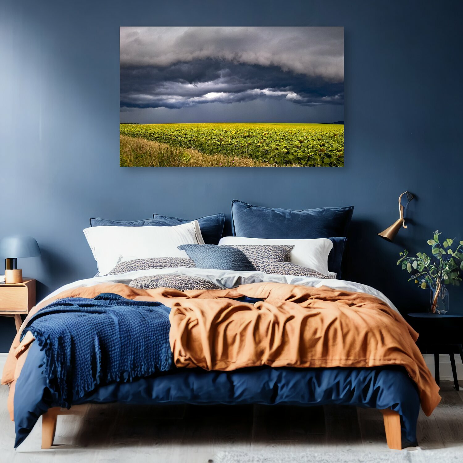 10 цен на Картина на холсте "Шторм, жёлтый, облако" на подрамнике 120х75 см. для интерьера