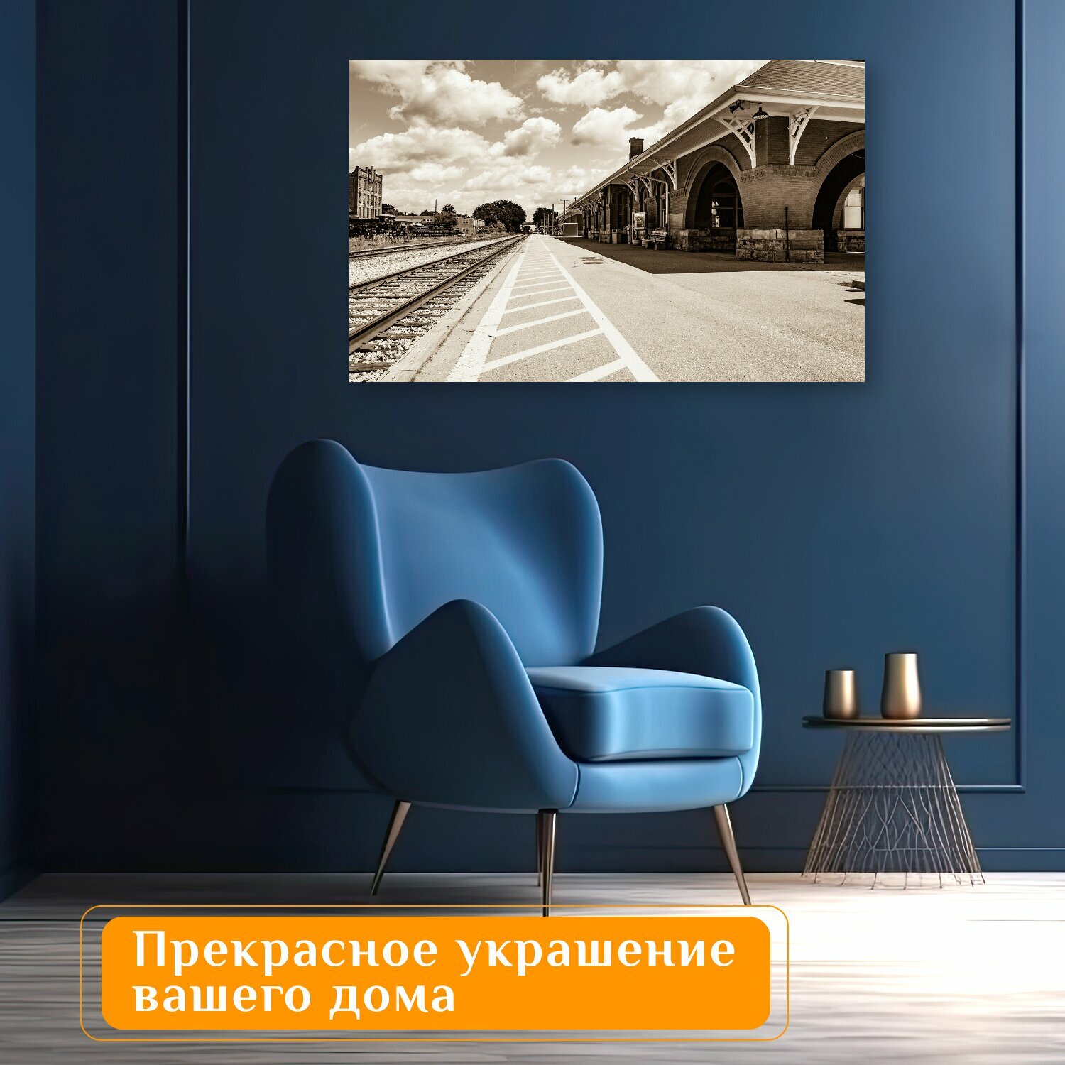 Картина на холсте "Железная дорога, железнодорожный вокзал, железнодорожная станция" на подрамнике 120х75 см. для интерьера информация: